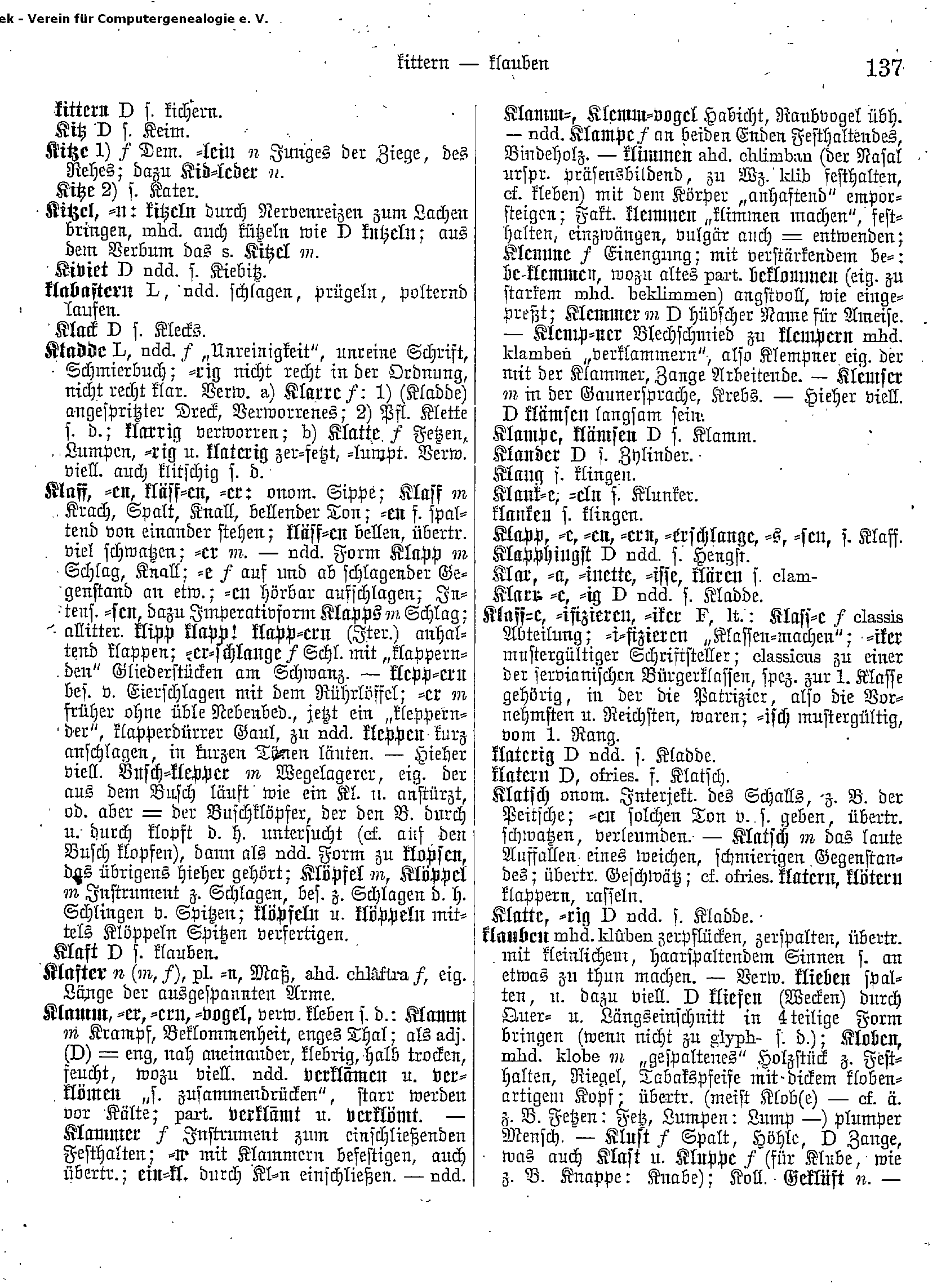 Klarr, Klarre, klarrig D, ndd. s. Kladde.