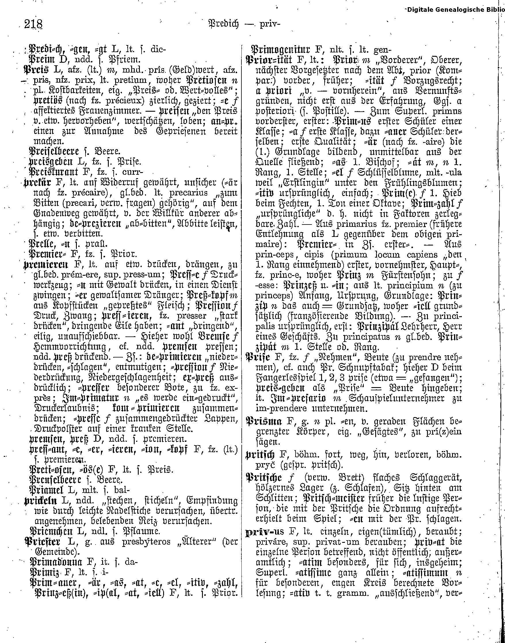 Primaner, primär, Primas, Primat, Prime, Primel, primitiv, Primzahl, Prinzeß(in), Prinzip, Prinzipal, Prinzipat, prinziell F, lt. s. Prior.