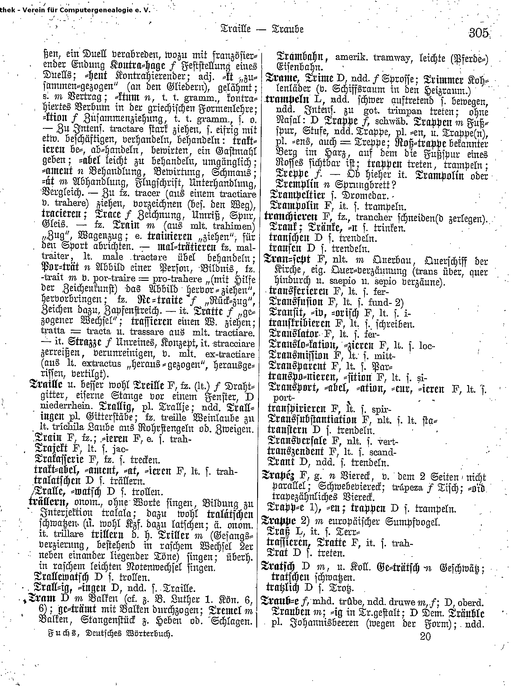 Traille u. besser wohl Treille F, fz. (lt.) f