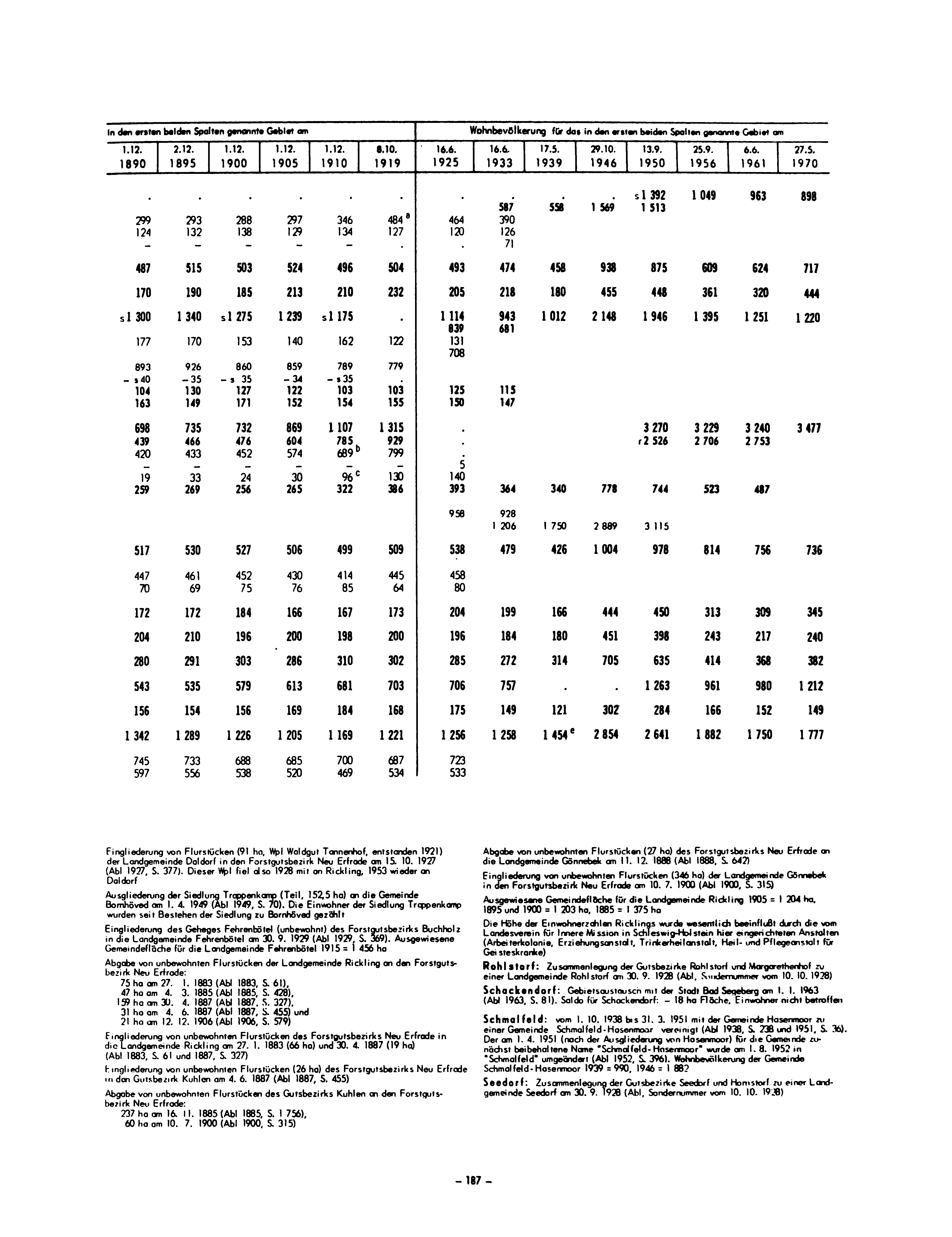 Die Bevölkerung der Gemeinden in Schleswig-Holstein 1867-1970/187