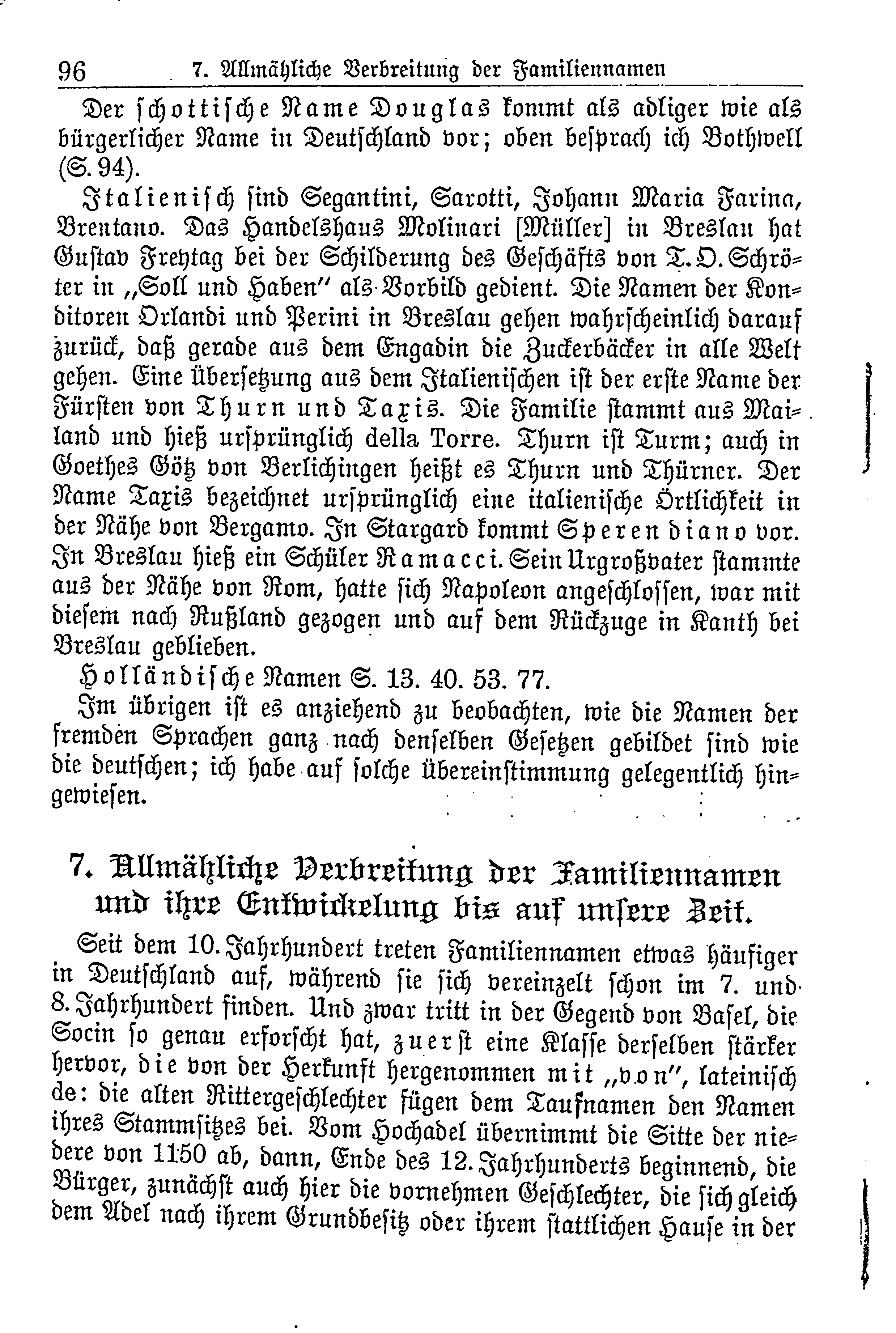 7. Allmähliche Verbreitung der Familiennamen und ihre Entwickelung bis auf unsere Zeit.