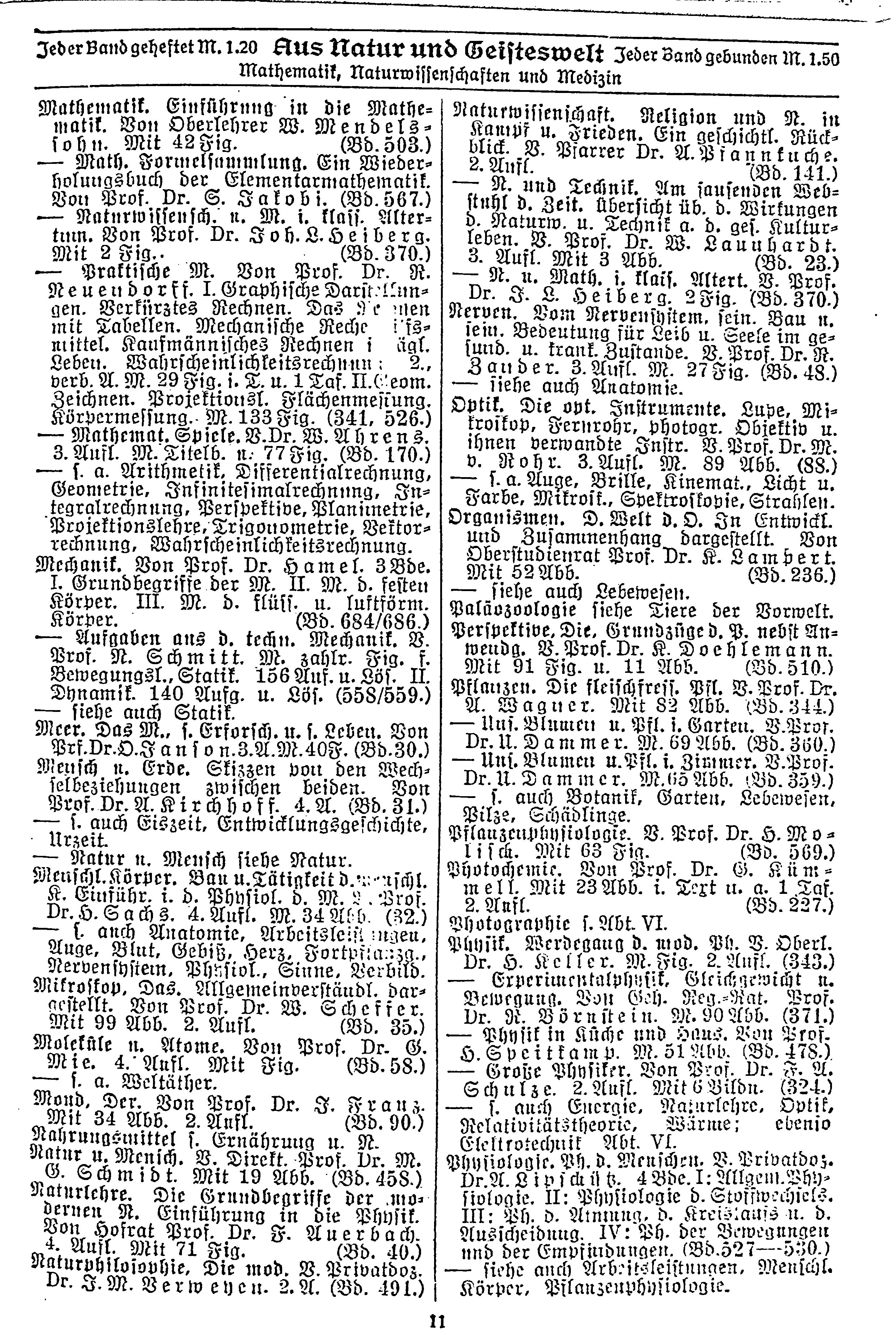 Jeder Band geheftet M. 1.20 Aus Natur und Geisteswelt Jeder Band gebunden M. 1.50
