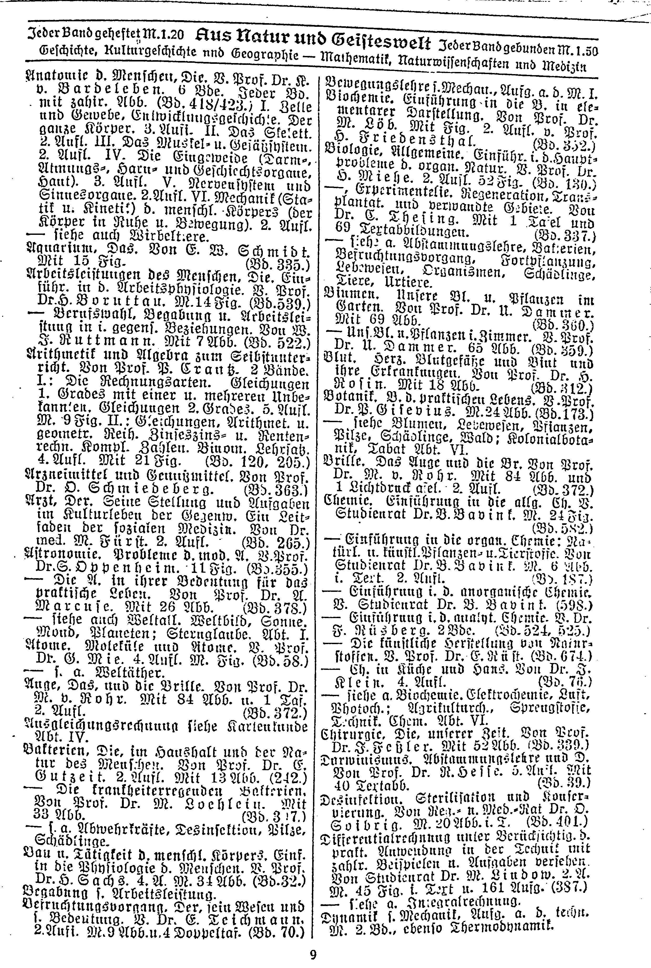 Jeder Band geheftet M. 1.20 Aus Natur und Geisteswelt Jeder Band gebunden M. 1.50