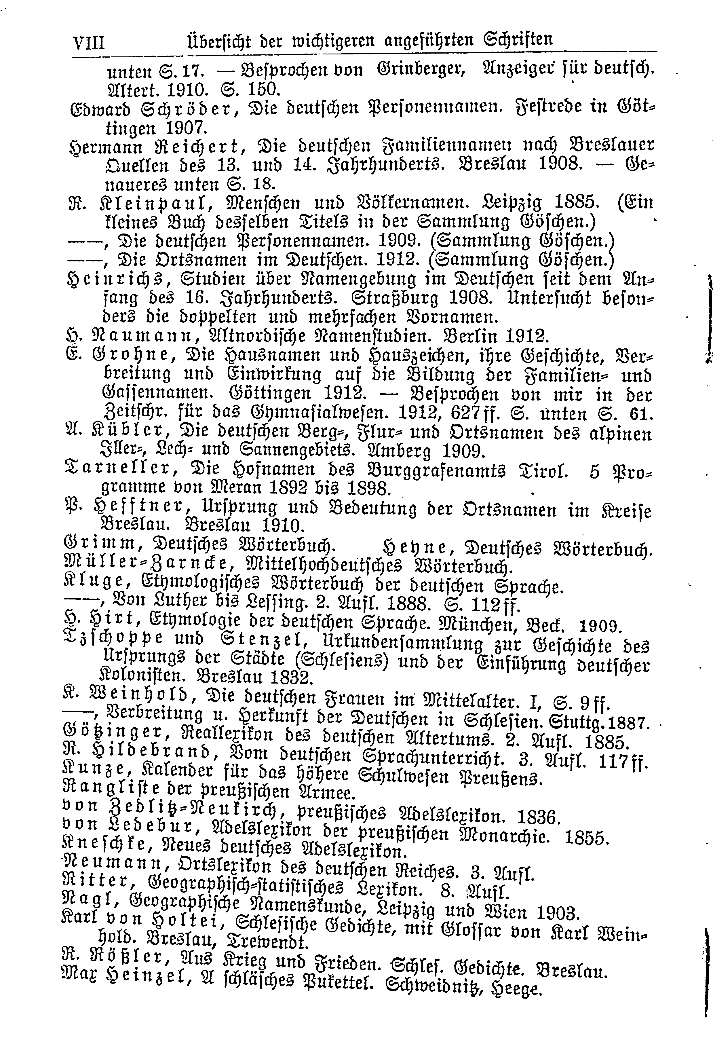 Hermann Reichert, Die deutschen Familiennamen nach Breslauer Quellen des 13. und 14. Jahrhunderts. Breslau 1908. — Genaueres unten S. 18.