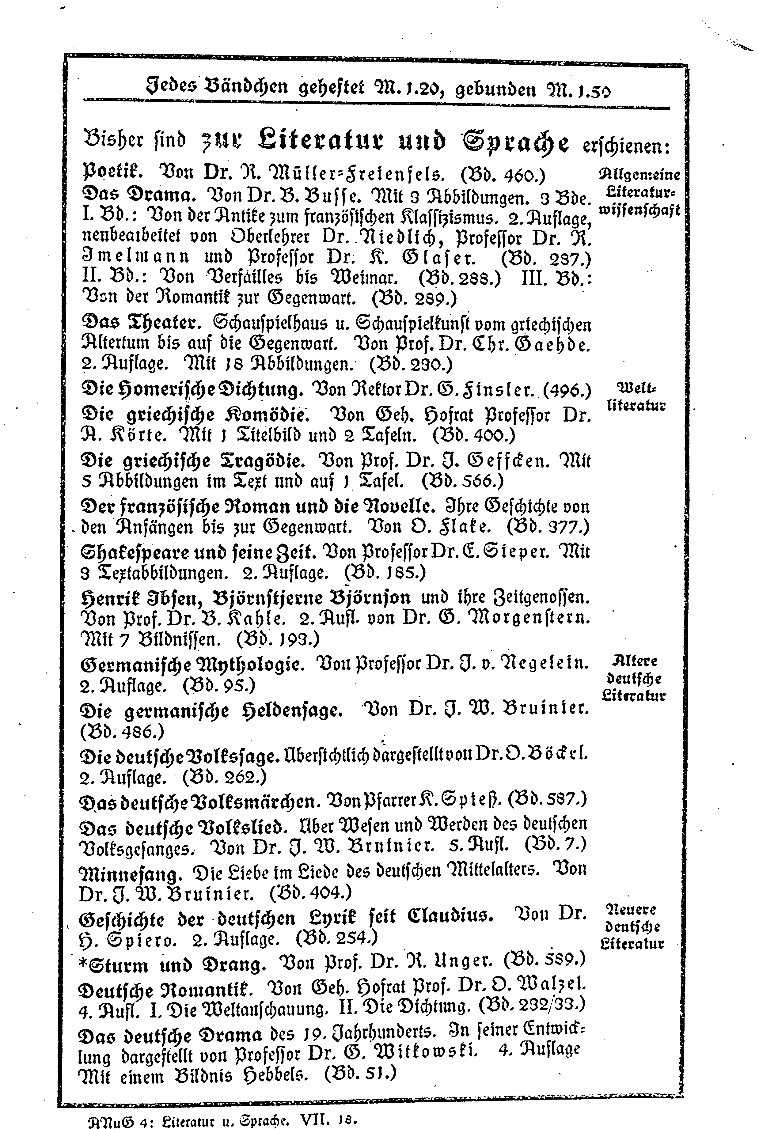 Jedes Bändchen geheftet M. 1.20, gebunden M.1.50