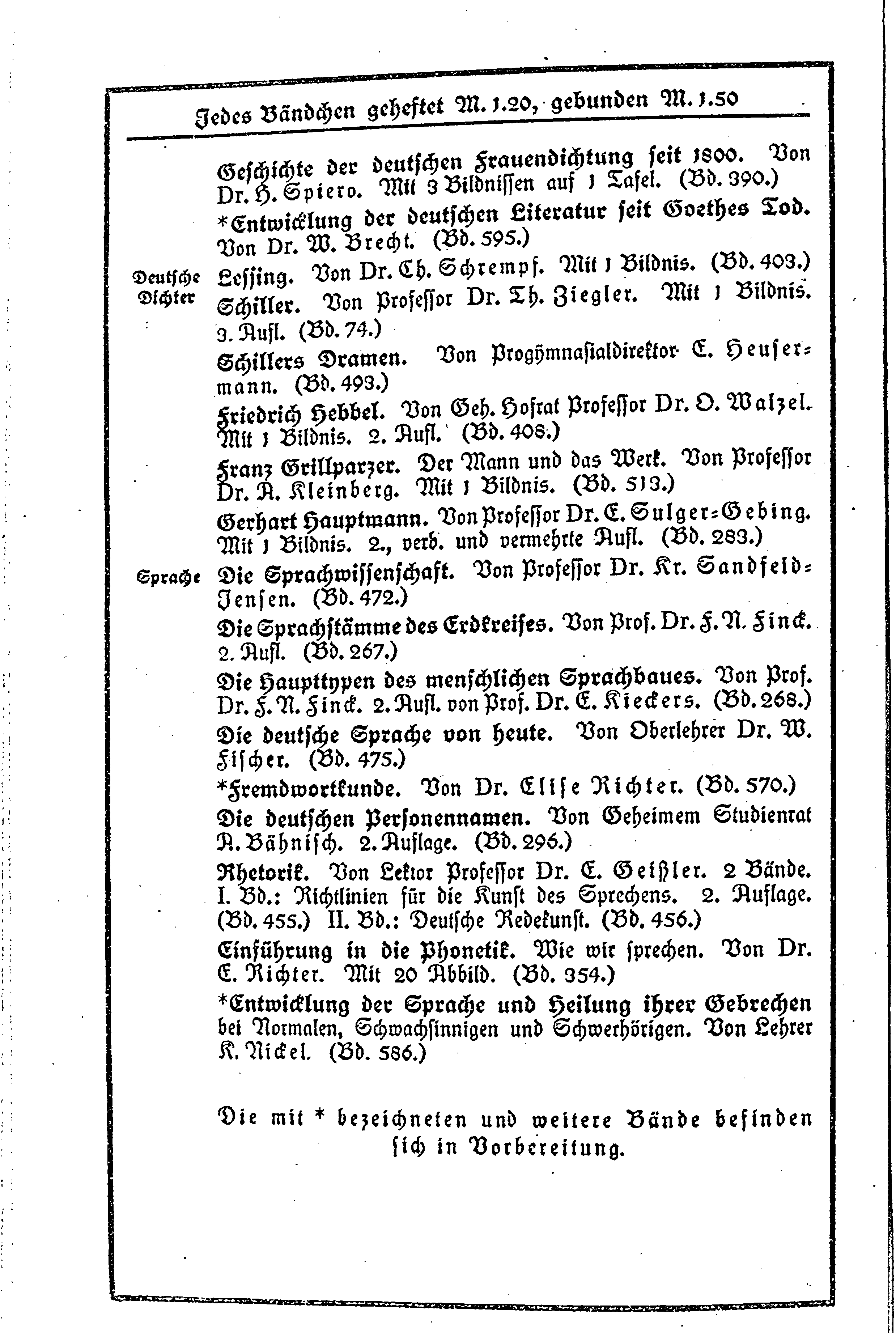 Jedes Bändchen geheftet M. 1.20, gebunden M.1.50