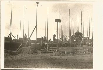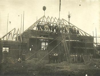 Als sich dann die Möglichkeit bot, aus einer Konkursmasse die für den Bau benötigten Steine zu kaufen, pro tausend wurden 32 RM frei Platz gezahlt, ging es an die Arbeit, die aber wegen der finanziellen Sorgen nur langsam voranging. Aus diesem Grunde konnten auch nicht alle Wünsche befriedigt und auch nicht alle vorgesehenen Einrichtungen ausgeführt werden. Es wurde ein Bauwerk auf Stottern. Den Rest der Finanzierung übernahm die Gemeinde, die durch die Geschäftsführung des Bürgermeisters W. Mahlstedt sehr sparsam gewirt¬schaftet hatte. Und als dann 1935 es seiner Bestimmung übergeben werden konnte, erfüllte uns ein gewisser Stolz. Es hatte sich einmal wieder gezeigt, daß, wo ein Wille ist, sich meistens auch ein Weg zur Durchführung desselben finden läßt.