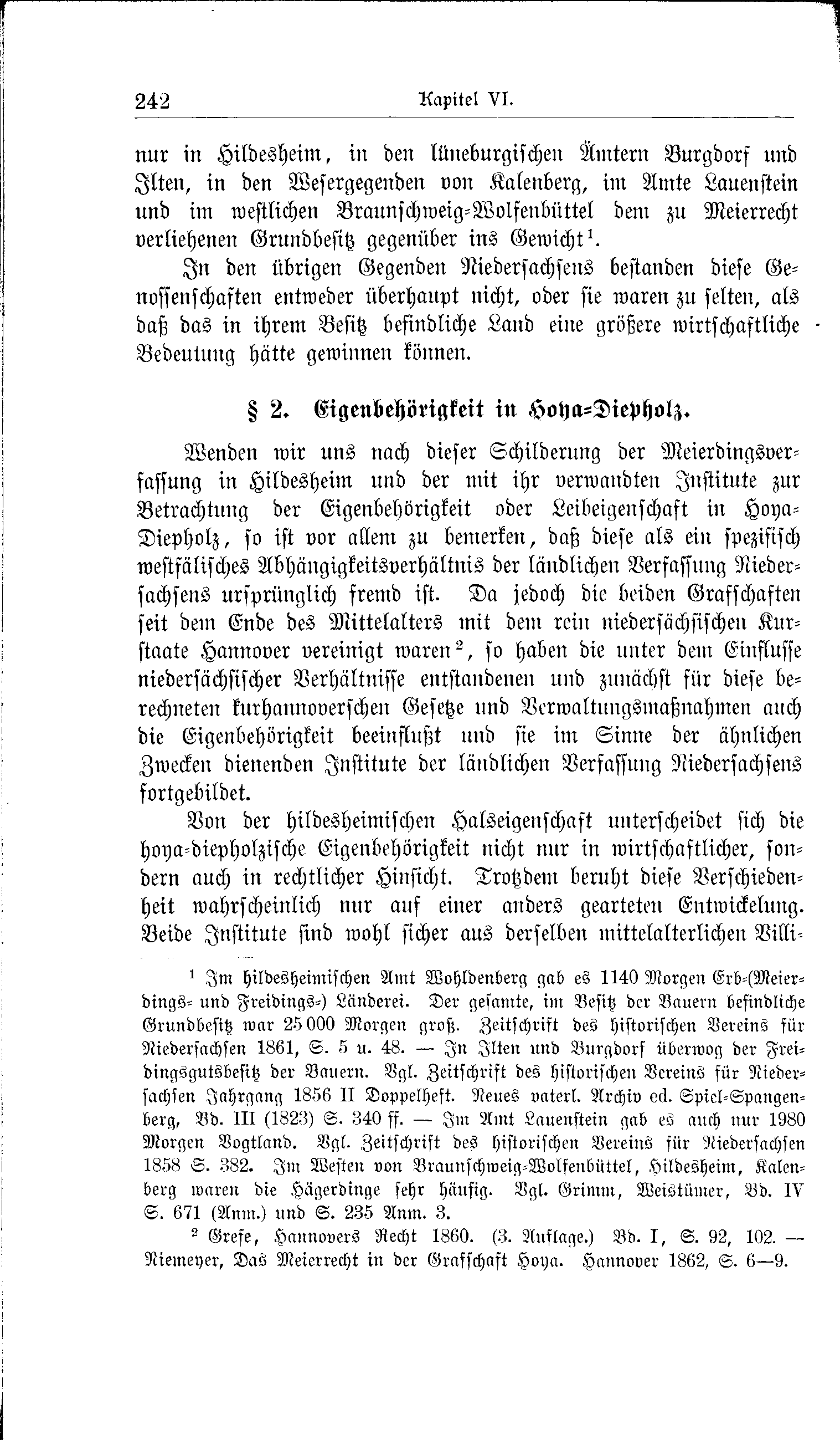2 Grefe, Hannovers Recht 1860. (3. Auflage.) Bd. I, S. 92, 102. — Niemeyer, Das Meierrecht in der Grafschaft Hoya. Hannover 1862, S. 6—9.