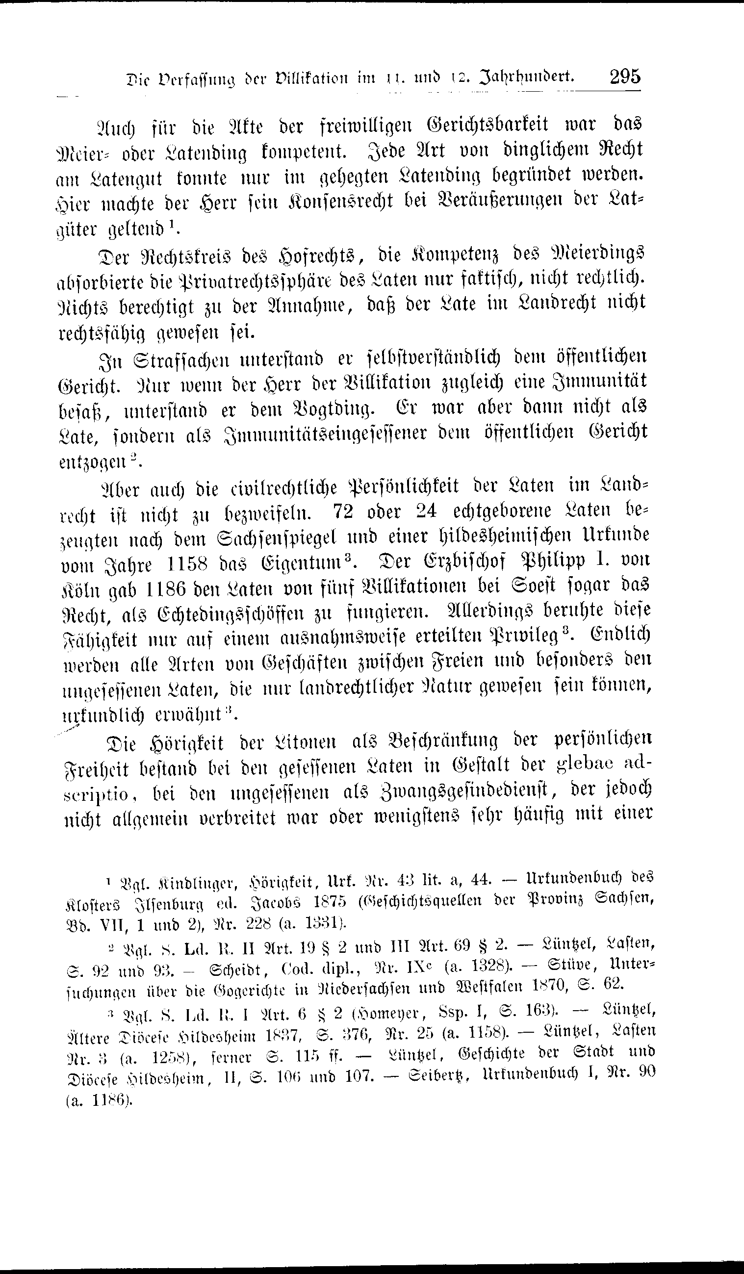 Aber auch die civilrechtliche Persönlichkeit der Laten im Landrecht ist nicht zu bezweifeln. 72 oder 24 echtgeborene Laten bezeugten nach dem Sachsenspiegel und einer hildesheimischen Urkunde vom Jahre 1158 das Eigentums Der Erzbischof Philipp I. von Köln gab 1186 den Laten von fünf Villikationen bei Soest sogar das Recht, als Echtedingsschöffen zu fungieren. Allerdings beruhte diese Fähigkeit nur auf einem ausnahmsweise erteilten Privileg ^. Endlich weiden alle Arten von Geschäften zwischen Freien und besonders den ungesessenen Laten, die nur landrechtlicher Natur gewesen sein können, urkundlich erwähnt ^.
