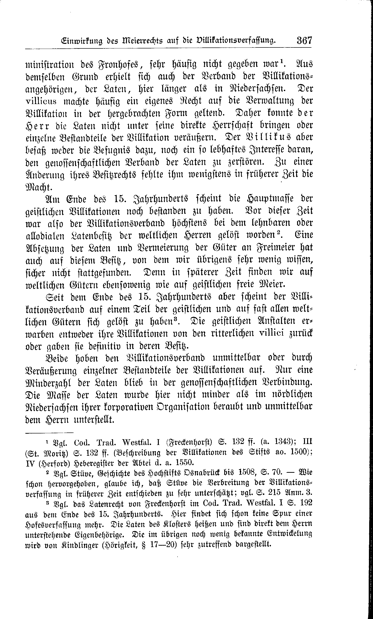 Beide hoben den Villikationsverband unmittelbar oder durch Veräußerung einzelner Bestandteile der Villikationen auf. Nur eine Minderzahl der Laten blieb in der genossenschaftlichen Verbindung. Die Masse der Laten wurde hier nicht minder als im nördlichen Niedersachsen ihrer korporativen Organisation beraubt und unmittelbar dem Herrn unterstellt.