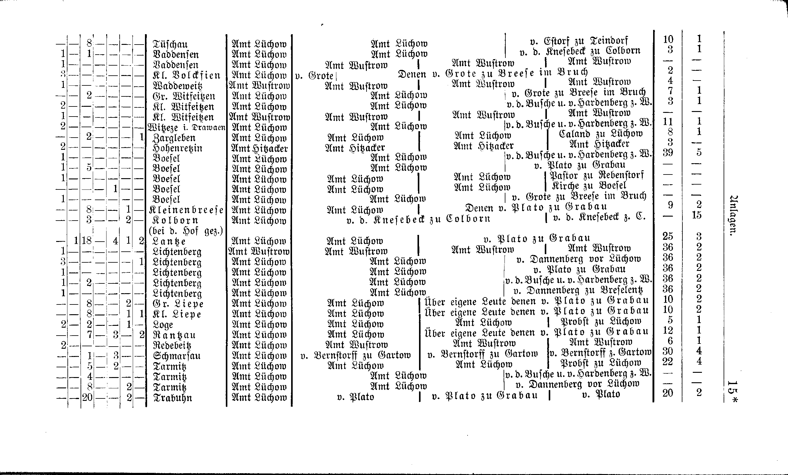Tabellen über die Verteilung bes. der adeligen Grundherrschaft im Amt Lüchow.[1] [Weiter, von S.14*].[2]