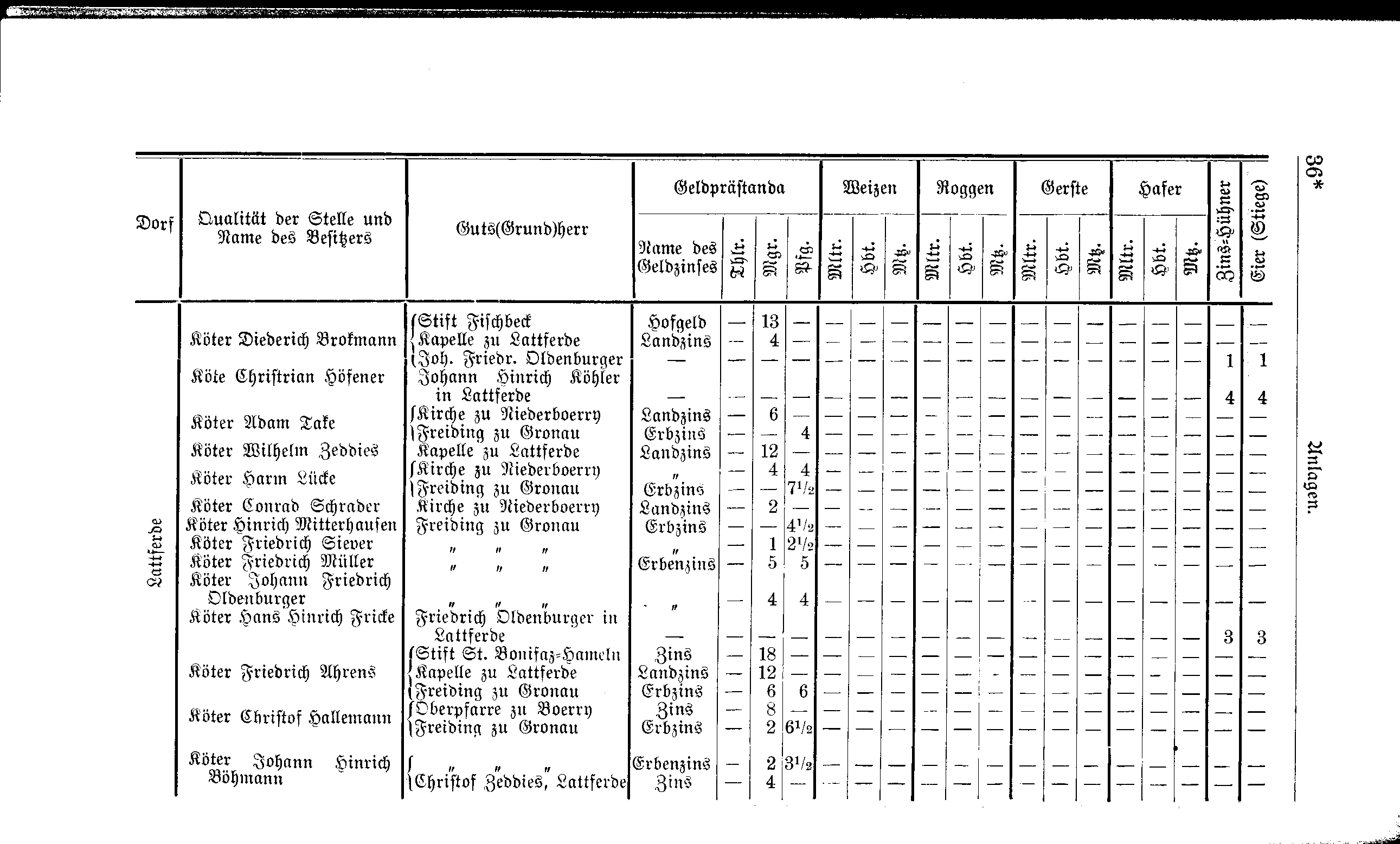 | Köter Wilhelm Zeddies | Kapelle zu Lattferde | Landzins | – | 12 | – | – | – | – | – | – | – | – | – | – | – | – | – | – | – | |