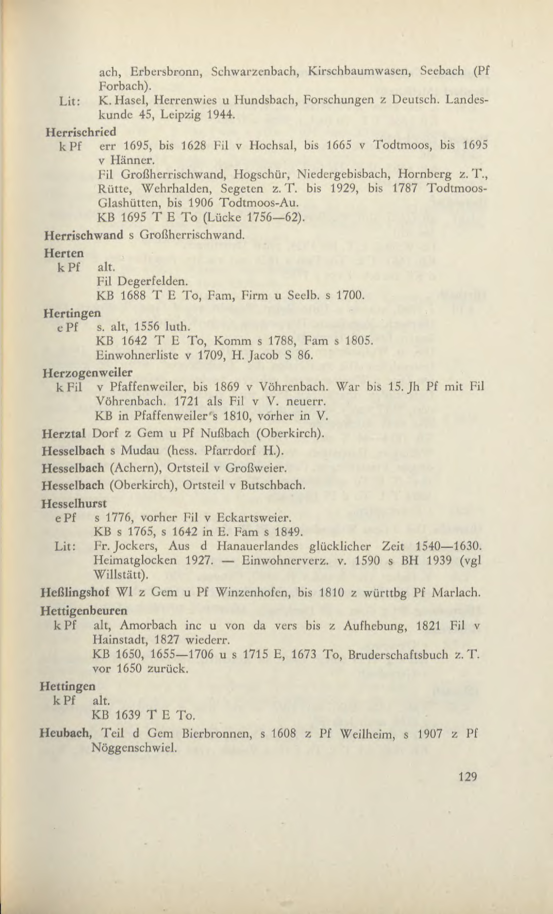 | Lit: | K. Hasel, Herrenwies u Hundsbach, Forschungen z Deutsch. Landeskunde 45, Leipzig 1944. | |