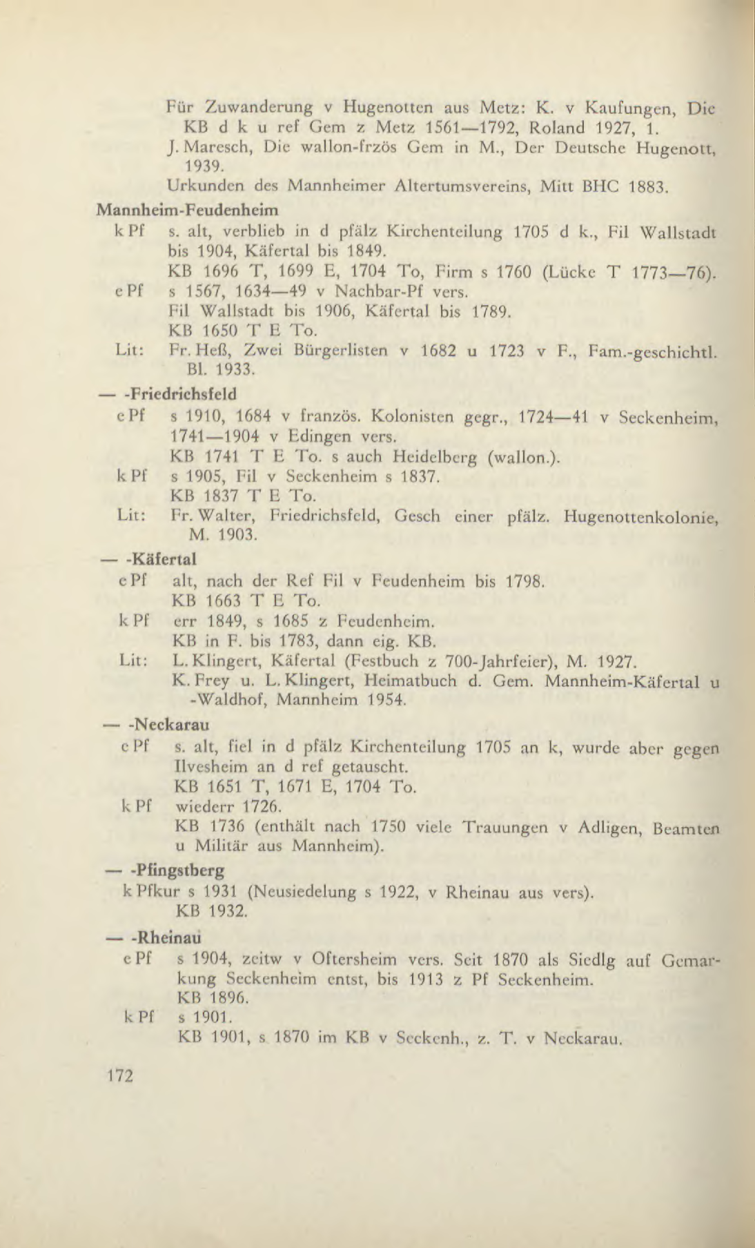 | Lit: | Fr. Walter, Friedrichsfeld, Gesch einer pfälz. Hugenottenkolonie, M. 1903. | |