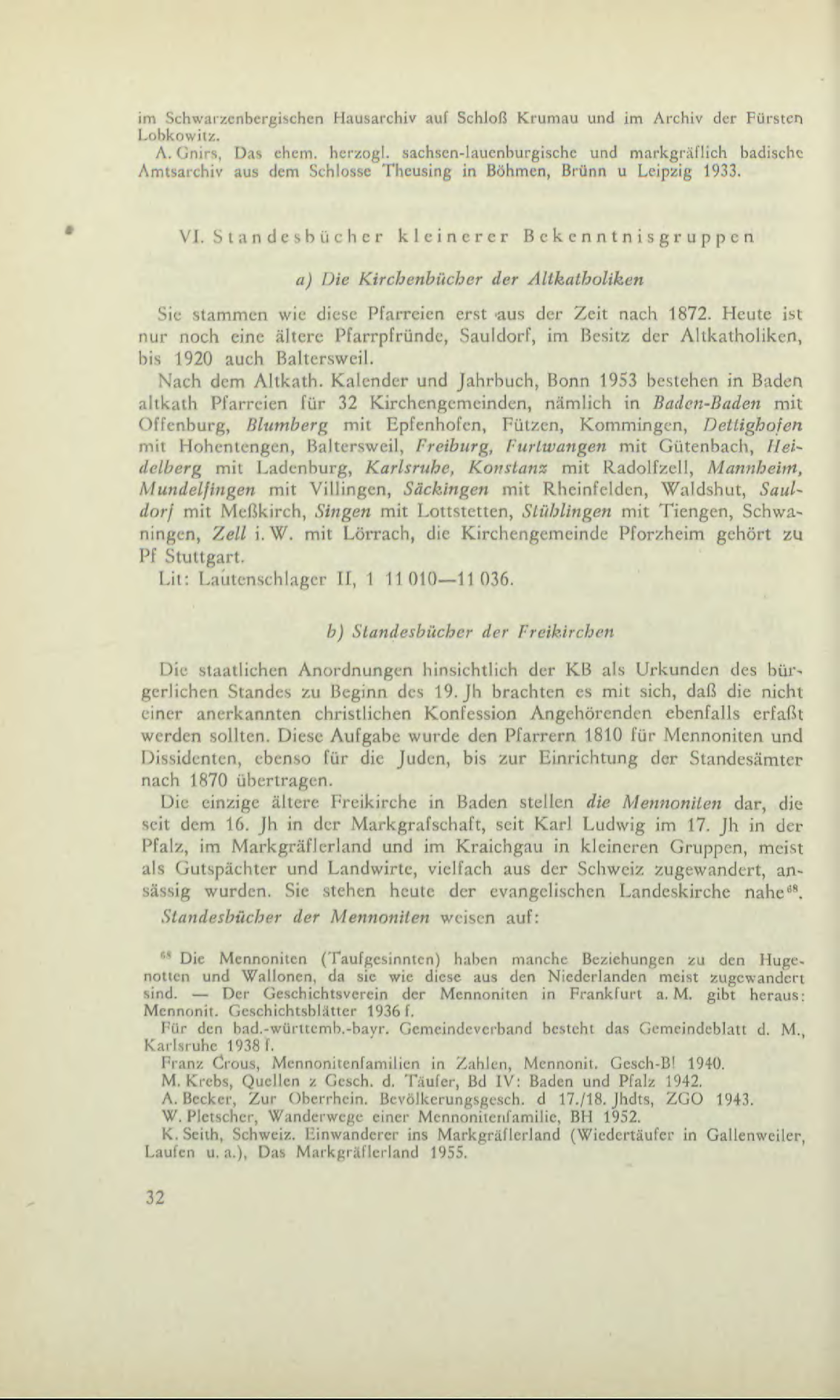 VI. Standesbücher kleinerer Bekenntnisgruppen