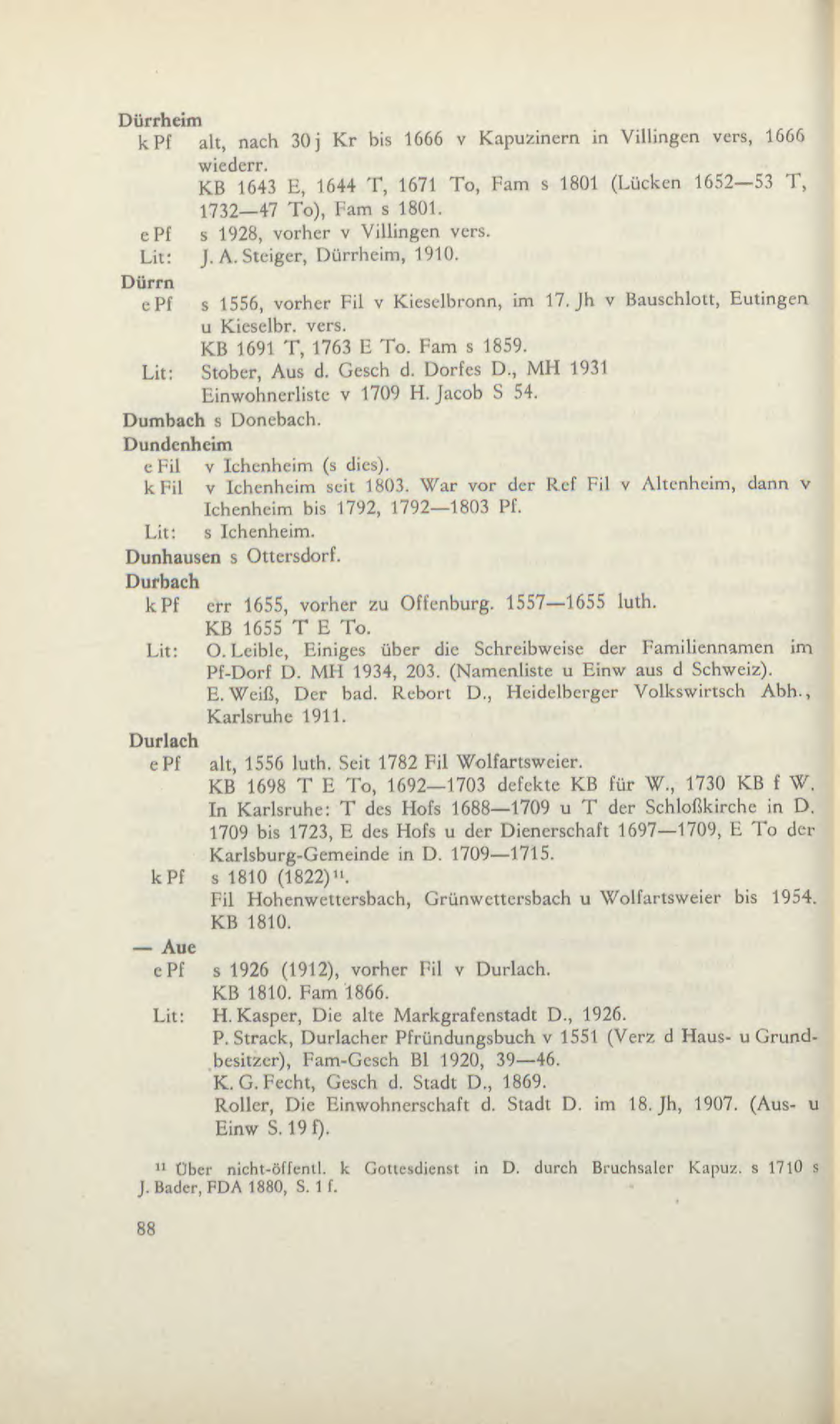 - ↑ Über nicht-öffentl. k Gottesdienst in D. durch Bruchsaler Kapuz. s 1710 s J. Bader, FDA 1880, S. 1 f.