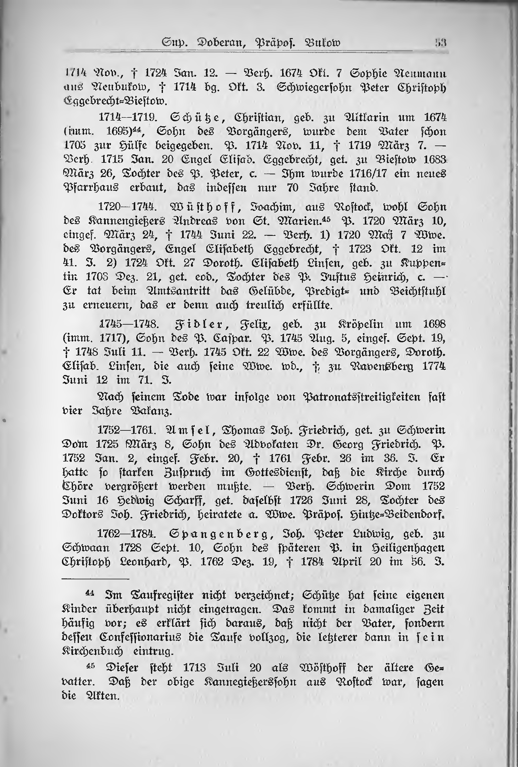 2. Dieser steht 1713 Juli 20 als Wösthoff der ältere Gevatter. Daß der obige Kannegießerssohn aus Rostock war, sagen die Akten.