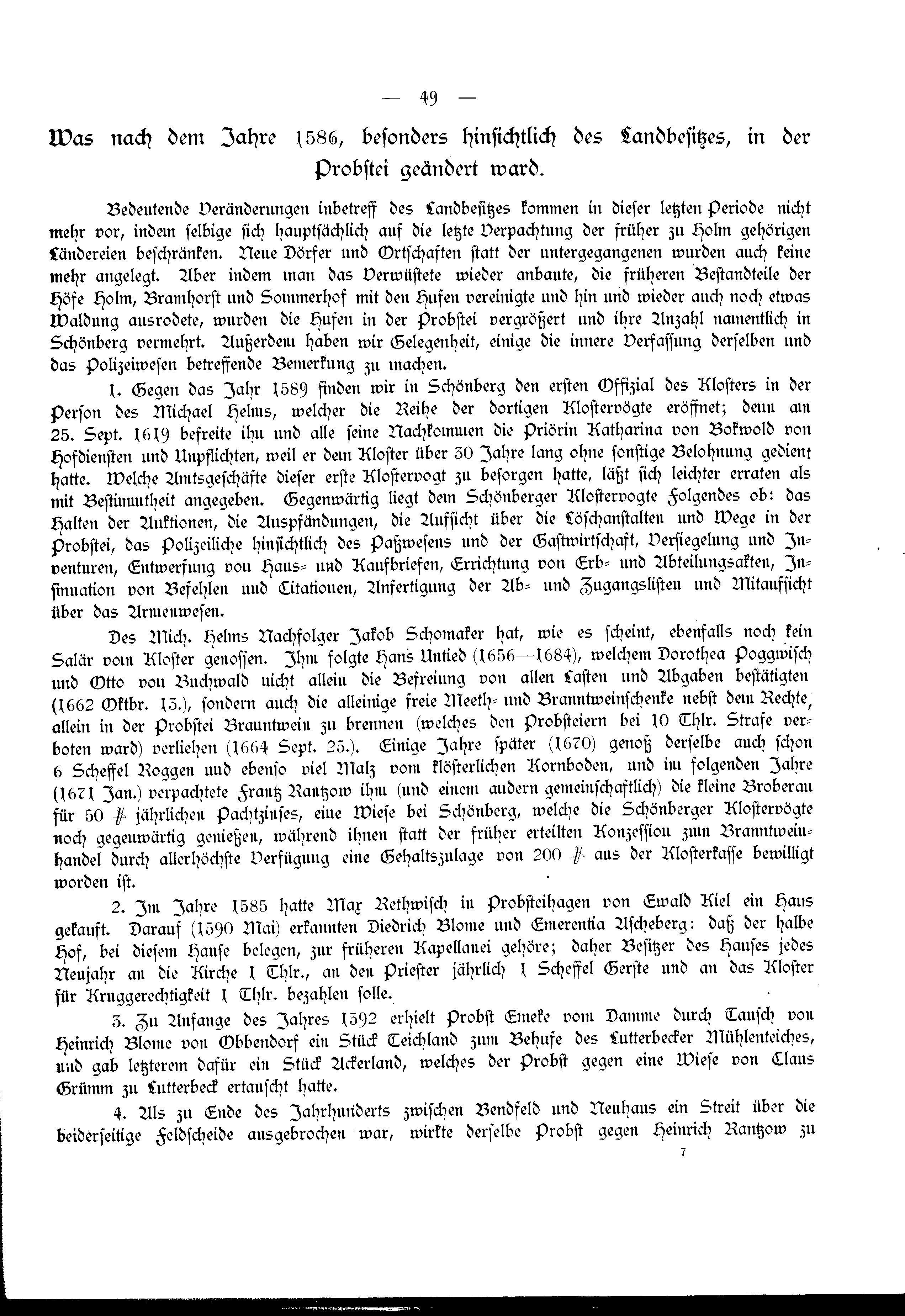 Was nach dem Jahre1586, besonders hinsichtlich des Landbesitzes, in der Probstei geändert ward.