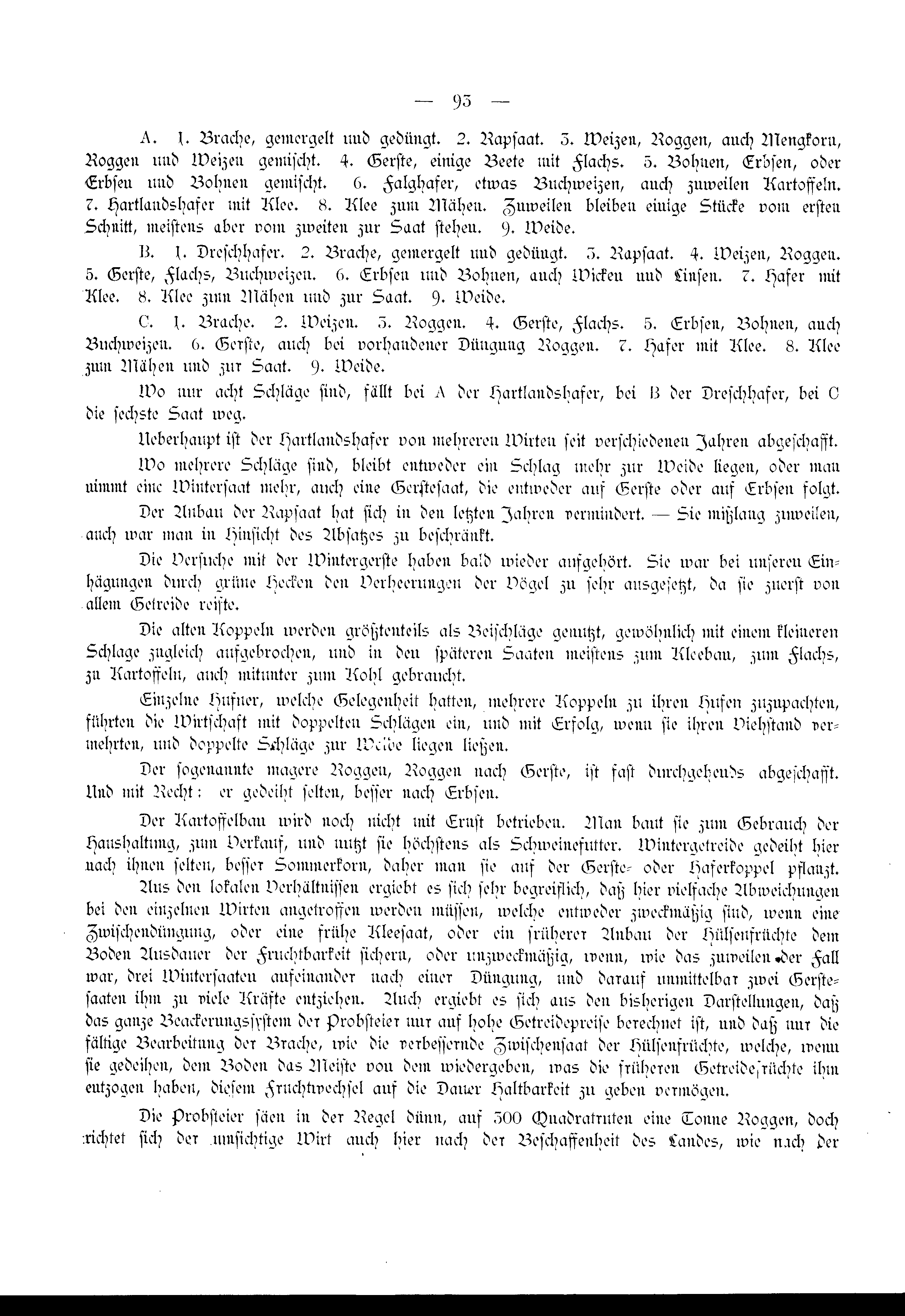 Wo mehrere Schläge sind, bleibt entweder ein Schlag mehr zur Weide liegen, oder man nimmt eine Wintersaat mehr, auch eine Gerstesaat, die entweder auf Gerste oder auf Erbsen folgt.