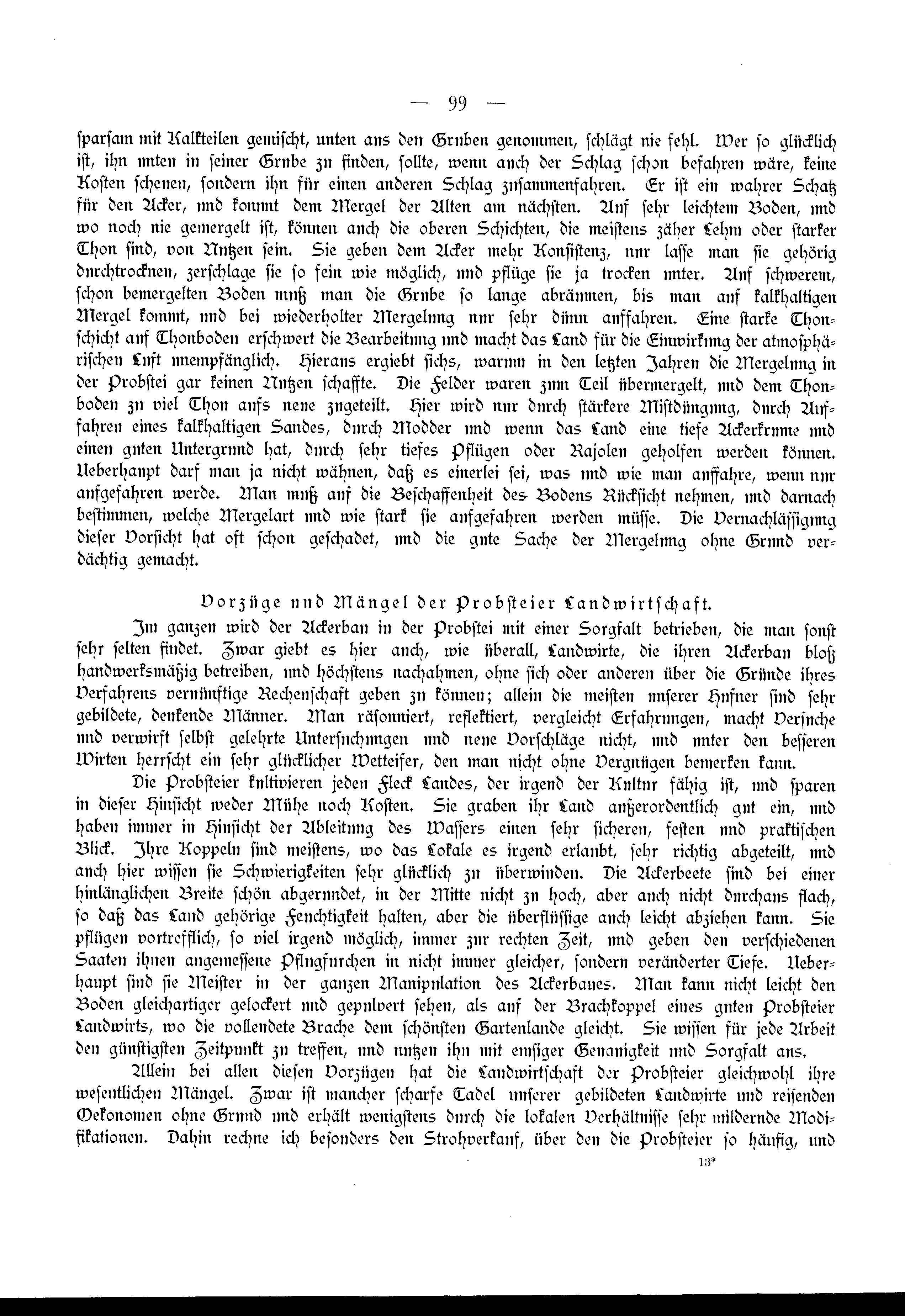 Im ganzen wird der Ackerbau in der Probstei mit einer Sorgfalt betrieben, die man sonst sehr selten findet. Zwar giebt es hier auch, wie überall, Landwirte, die ihren Ackerbau bloß handwerksmäßig betreiben, und höchstens nachahmen, ohne sich oder anderen über die Gründe ihres Verfahrens vernünftige Rechenschaft geben zu können; allein die meisten unserer Hufner sind sehr gebildete, denkende Männer. Man räsonniert, reflektiert, vergleicht Erfahrungen, macht Versuche und verwirft selbst gelehrte Untersuchungen und neue Vorschläge nicht, und unter den besseren Wirten herrscht ein sehr glücklicher Wetteifer, den man nicht ohne Vergnügen bemerken kann.