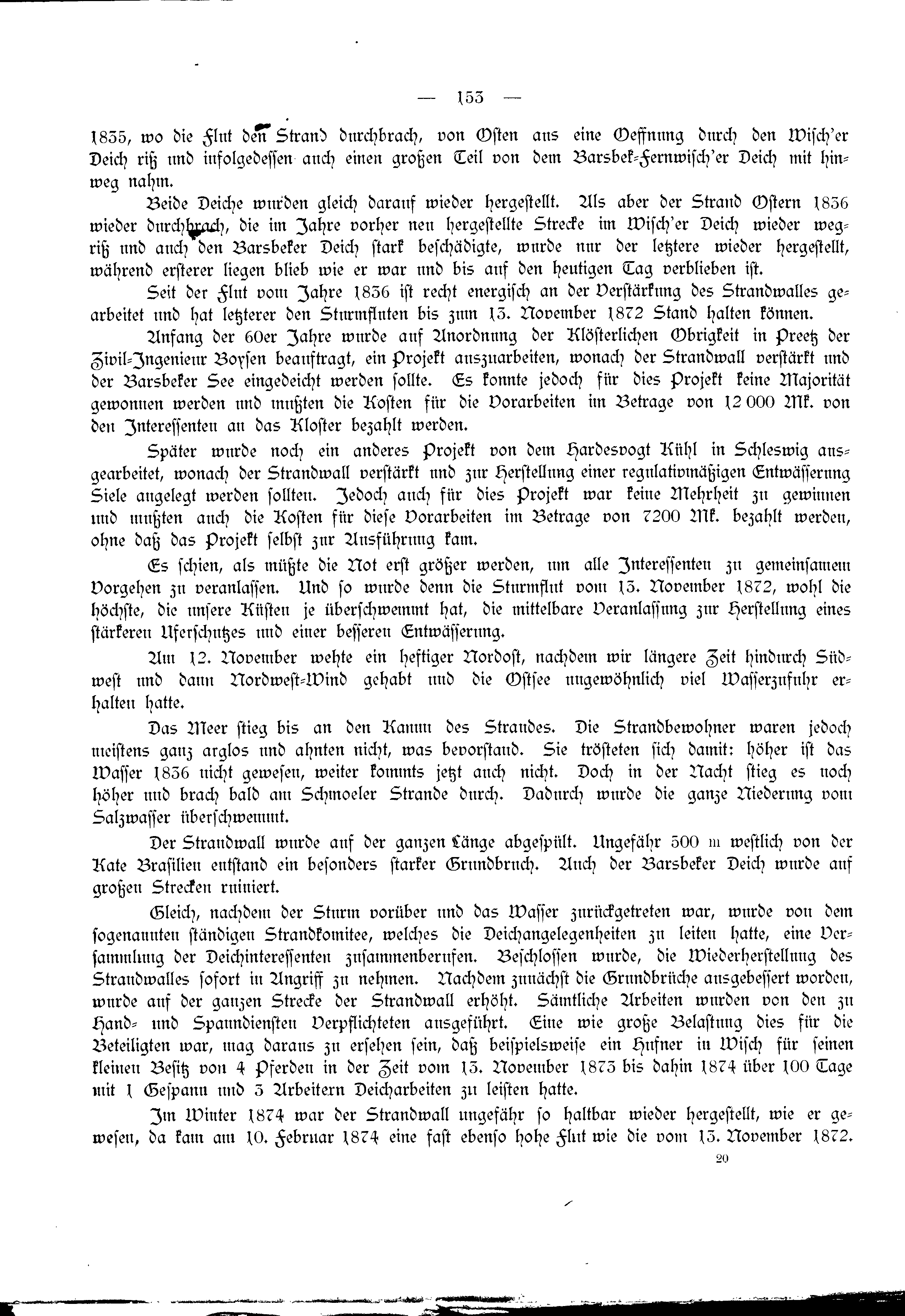 1835, wo die Flut den Strand durchbrach, von Osten aus eine Oeffnung durch den Wisch'er Deich riß und infolgedessen auch einen großen Teil von dem Barsbek-Fernwisch'er Deich mit hinweg nahm.