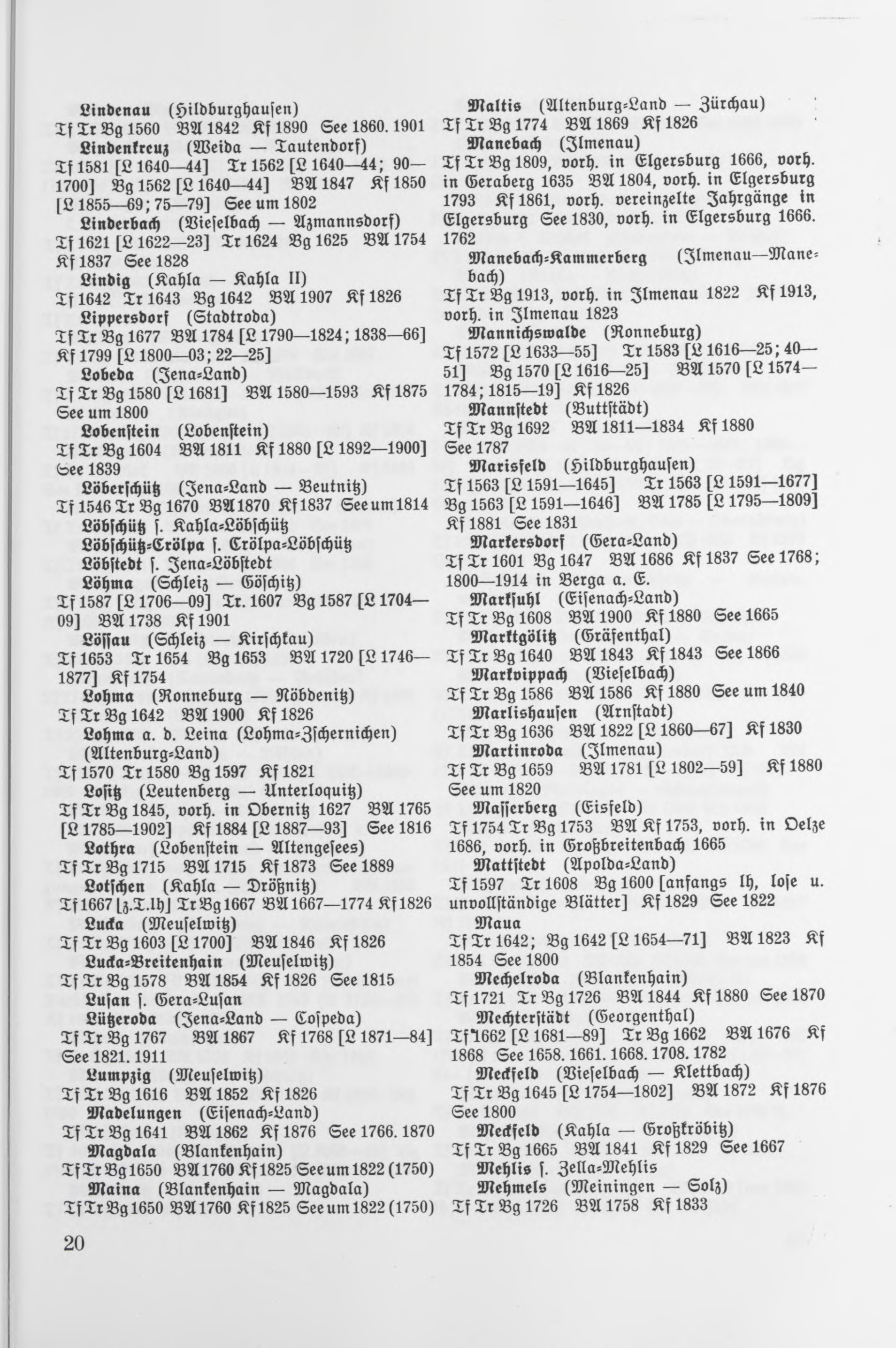 Die evangelischen Kirchenbücher Thüringens (Güldenapfel)/20