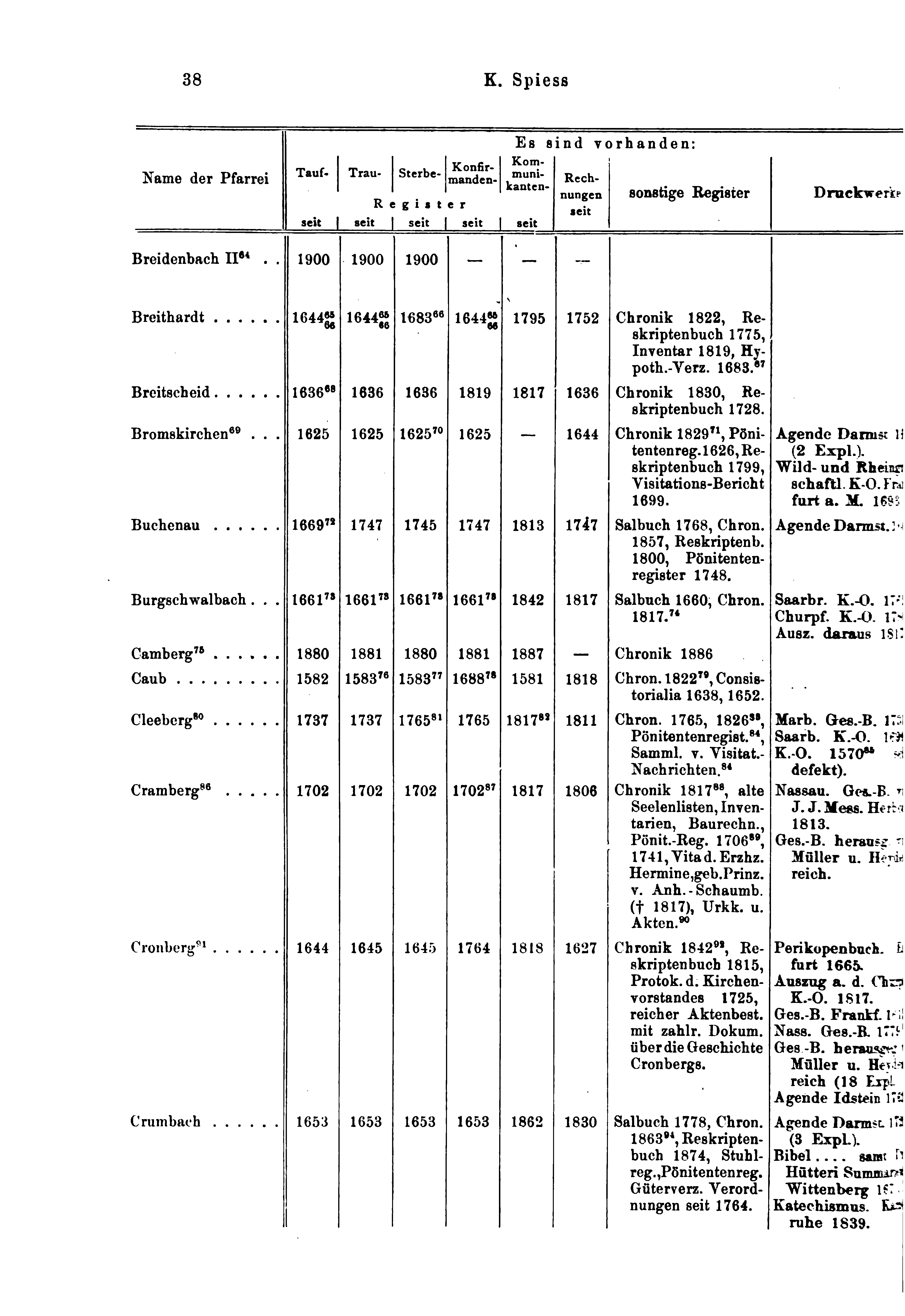 Die evangelischen Kirchenbücher im Regierungsbezirk Wiesbaden (Spiess)/38