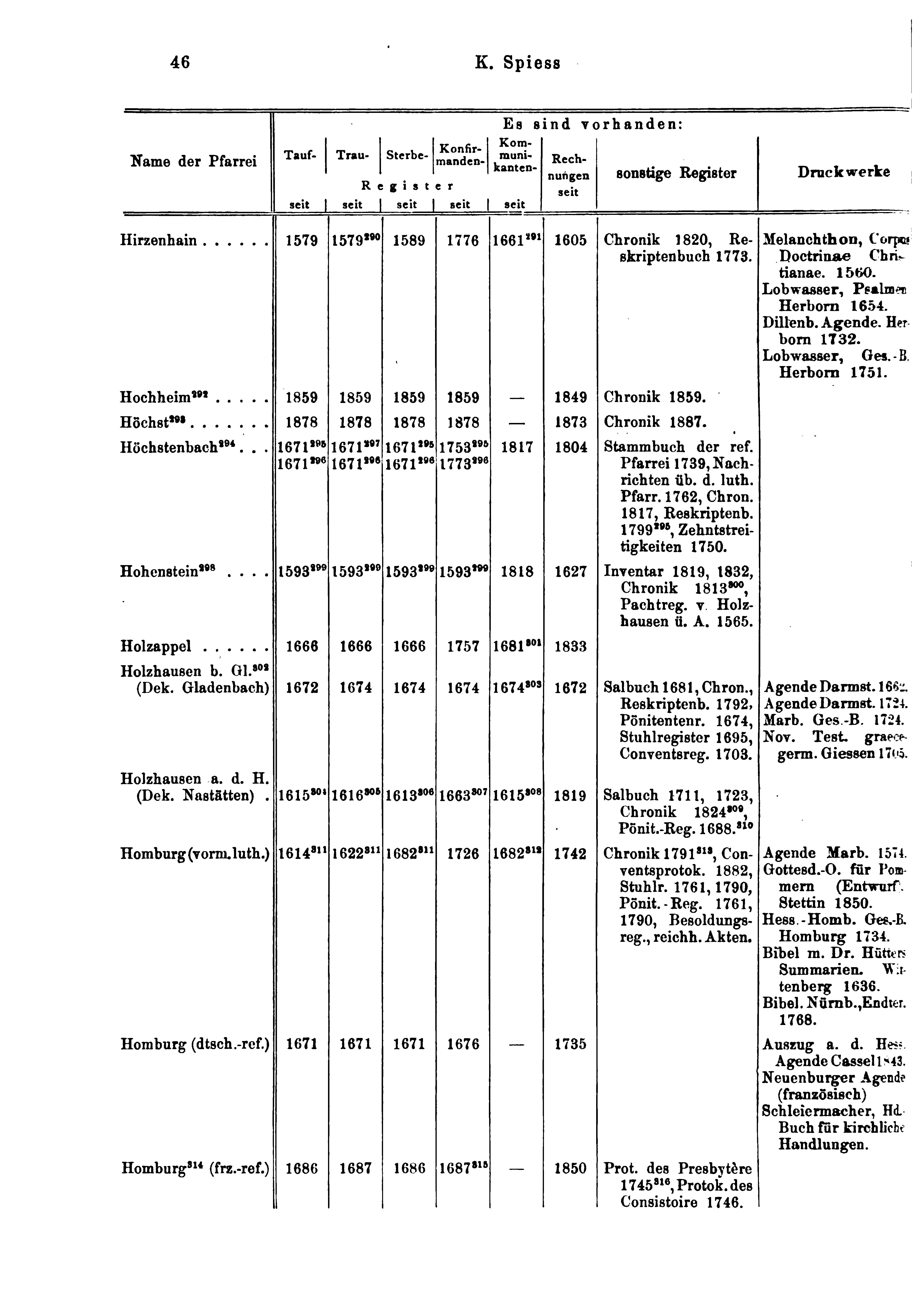 Die evangelischen Kirchenbücher im Regierungsbezirk Wiesbaden (Spiess)/46