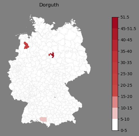 Absolute Verteilung des Namens Dorguth (1890)Direkt zur Karte Absolute Verteilung des Namens "Dorguth" um 1890 im damaligen Deutschen Reich Sie können die Karte innerhalb des Fensters zoomen und verschieben. |