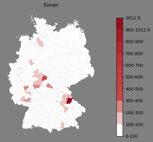 Absolute Verteilung des Namens Eimer (1890)Direkt zur Karte Absolute Verteilung des Namens "Eimer" um 1890 im damaligen Deutschen Reich Sie können die Karte innerhalb des Fensters zoomen und verschieben. |