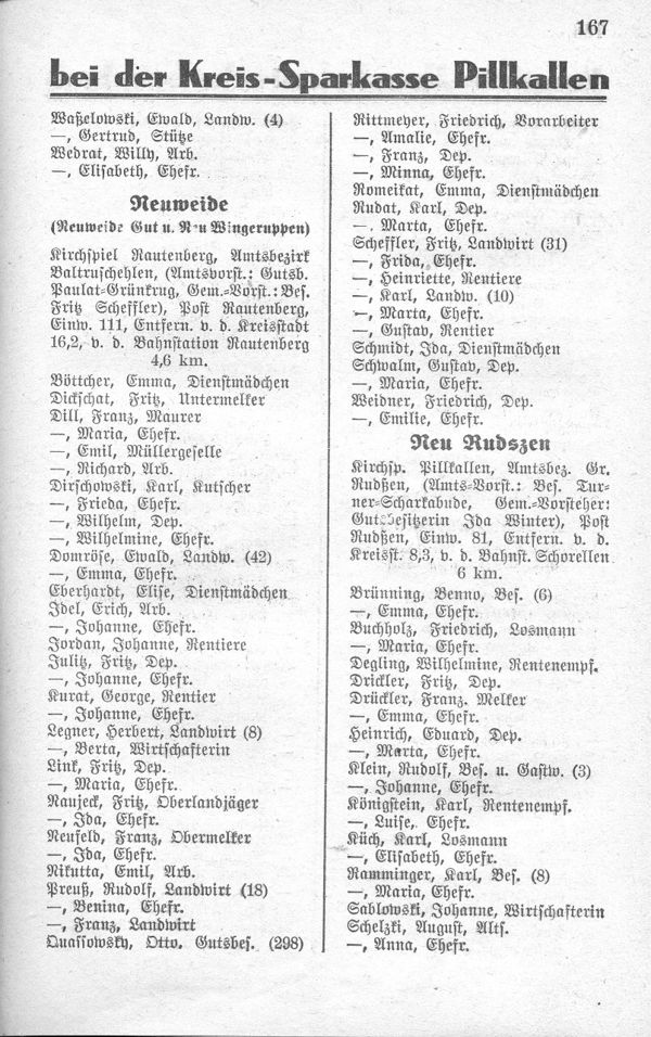 Auszug aus dem Einwohnerbuch Kreis Pillkallen 1930, Ostpreußen