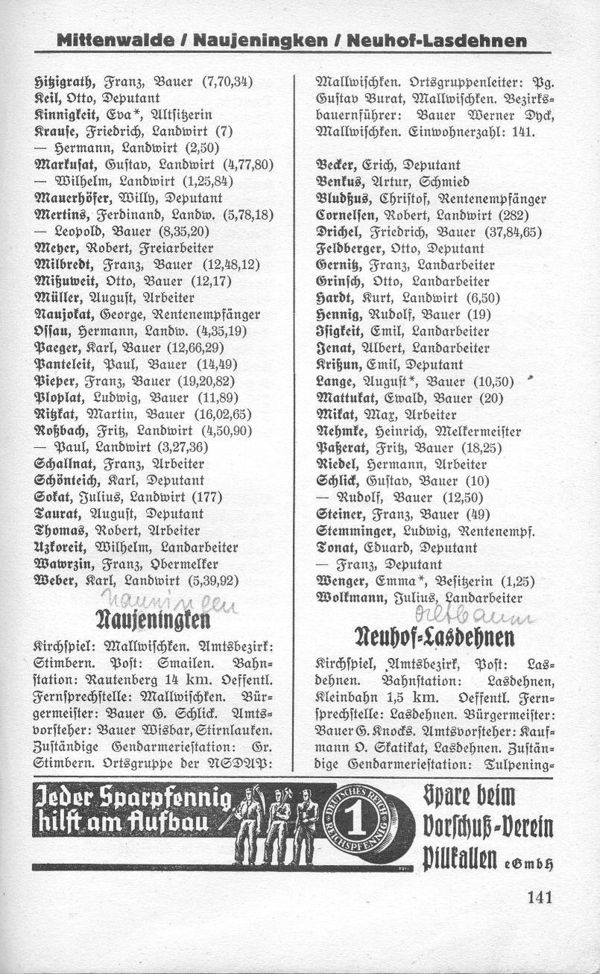 Einwohner der Gemeinde aus Adressbüchern von 1930 und 1937