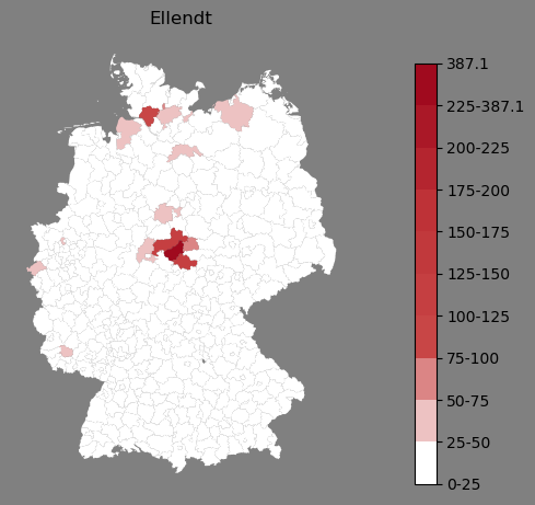 Absolute Verteilung des Namens Ellendt (1890)Direkt zur Karte Absolute Verteilung des Namens "Ellendt" um 1890 im damaligen Deutschen Reich Sie können die Karte innerhalb des Fensters zoomen und verschieben. |