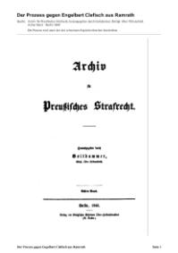 gewissen Clefisch von Ramrath des Einbruchs und den Letzteren des Mordes zu überführen,