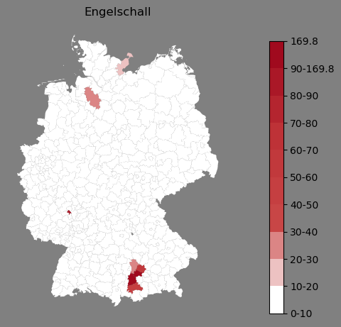 Absolute Verteilung des Namens Engelschall (1890)Direkt zur Karte Absolute Verteilung des Namens "Engelschall" um 1890 im damaligen Deutschen Reich Sie können die Karte innerhalb des Fensters zoomen und verschieben. |