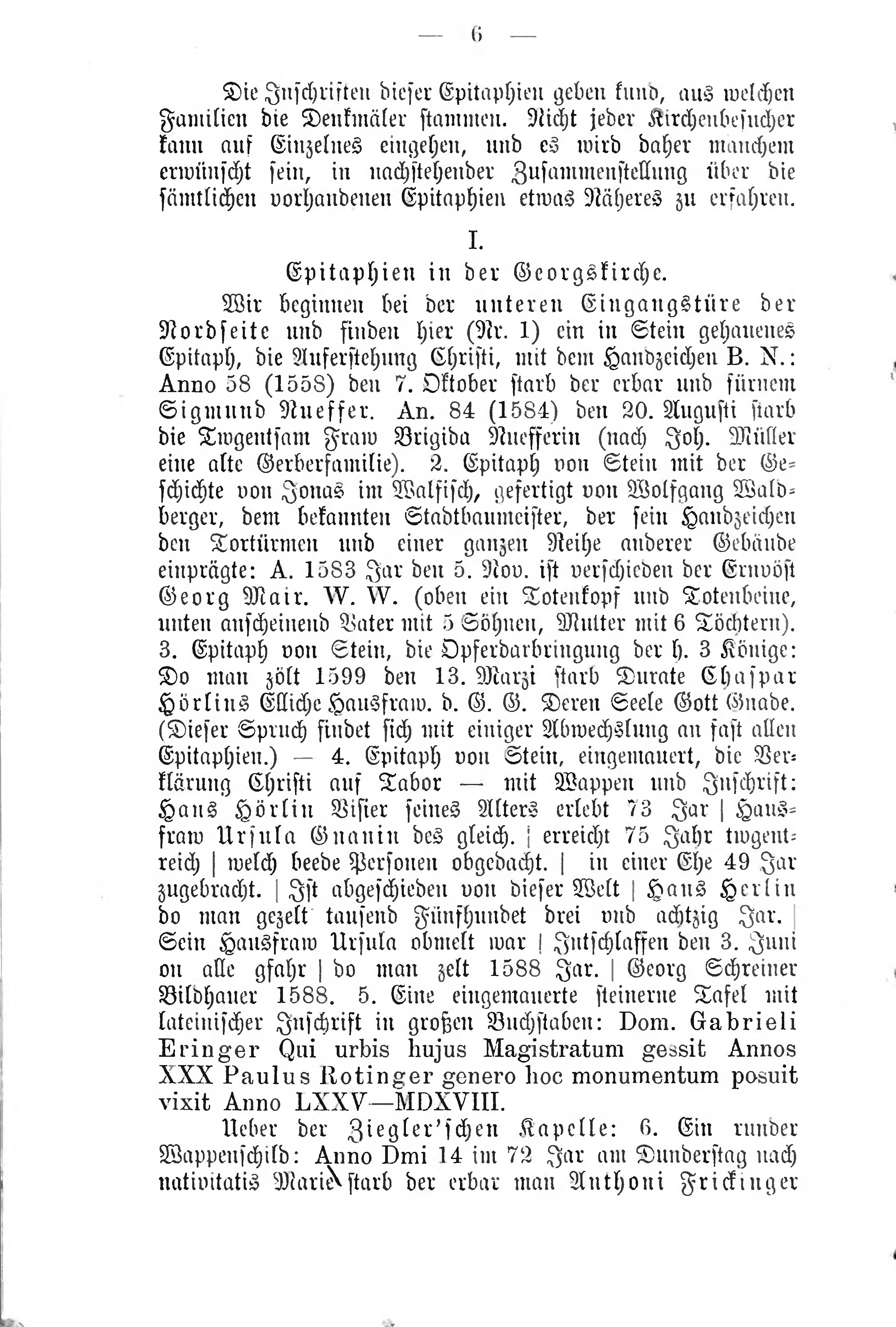 I. Epitaphien in der Georgskirche.