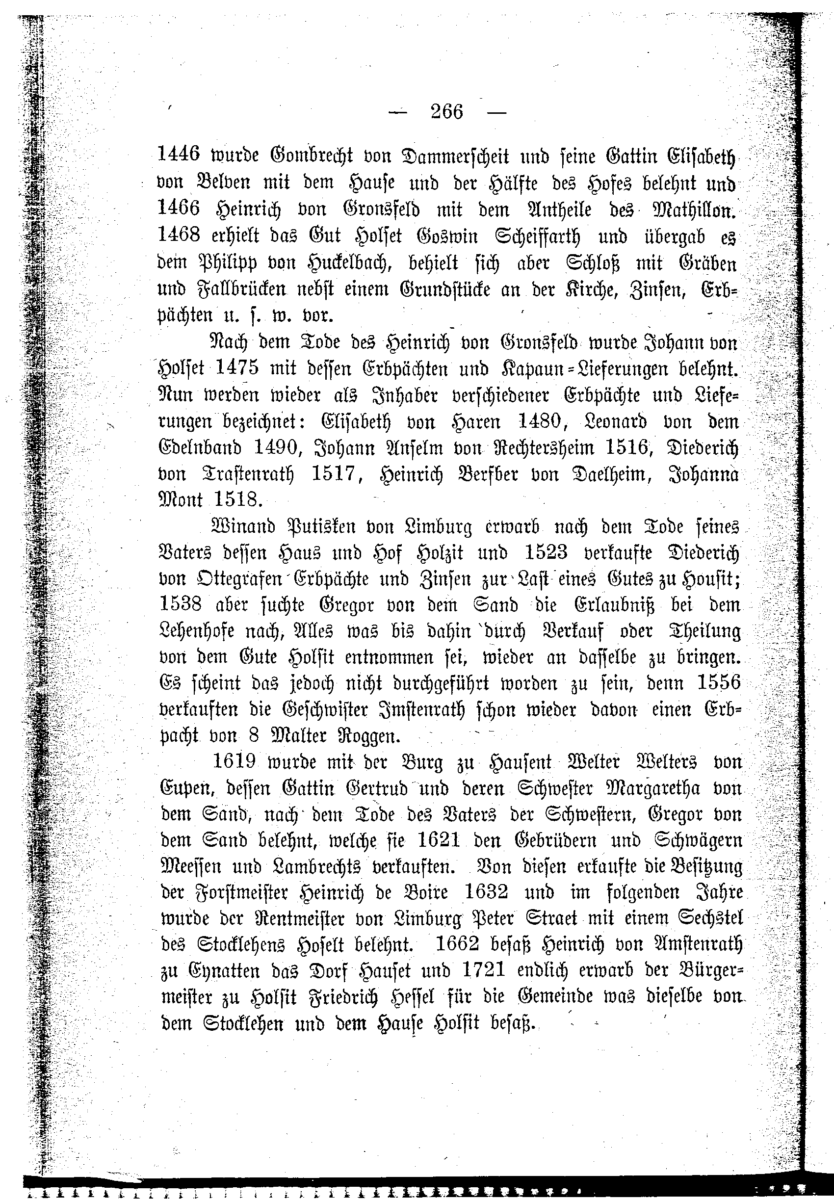 Winand Putisken von Limburg erwarb nach dem Tode seines Vaters dessen Haus und Hof Holzit und 1523 verkaufte Diederich von Ottegrafen Erbpächte und Zinsen zur Last eines Gutes zu Housit; 1538 aber suchte Gregor von dem Sand die Erlaubniß bei dem Lehenhofe nach, Alles was bis dahin durch Verkauf oder Theilung von dem Gute Holsit entnommen sei, wieder an dasselbe zu bringen. Es scheint das jedoch nicht durchgeführt worden zu sein, denn 1556 verkauften die Geschwister Imstenrath schon wieder davon einen Erbpacht von 8 Malter Roggen.