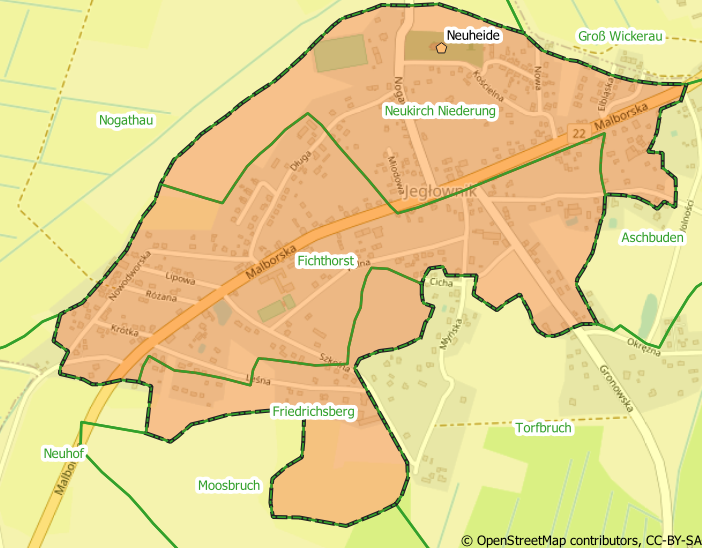 - 1772 Königreich Preußen > Provinz Westpreußen > landrätlicher Kreis Marienburg > Amt Elbingsche Niederung > Dörfer Neukirch, Fichthorst, Friedrichsberg