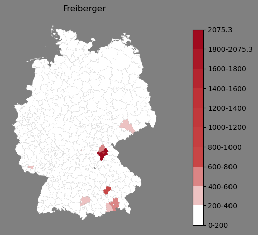 Absolute Verteilung des Namens Freiberger (1890)Direkt zur Karte Absolute Verteilung des Namens "Freiberger" um 1890 im damaligen Deutschen Reich Sie können die Karte innerhalb des Fensters zoomen und verschieben. |