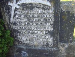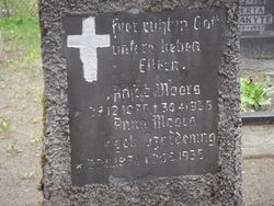 Der Grabstein ihres Bruders Ansas Moors [2] hingegen, der in Brusdeilienen während der Abtrennungszeit verstarb, trägt eine deutsche Inschrift. Ob damit eine latente politische Einstellung deutlich gemacht wurde, kann nicht mehr eruiert werden. Aber sie weist daraufhin, dass sich die Familie ihrer deutschen Wurzeln bewusst war und dies vielleicht auch so herausheben wollte. Durch die Inschrift erfährt man auch, dass der Steinmetz der deutschen Sprache nicht unbedingt mächtig war (Hier ruht in Gott - unsere lieben Eltern); ebenso die Kinder, die den Fehler anscheinend auch nicht bemerkten.