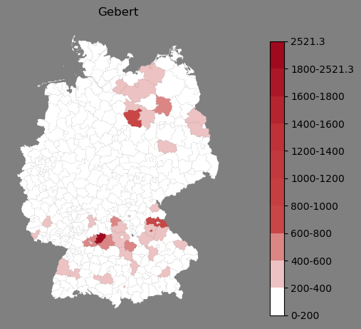 Absolute Verteilung des Namens Gebert (1890)Direkt zur Karte Absolute Verteilung des Namens "Gebert" um 1890 im damaligen Deutschen Reich Sie können die Karte innerhalb des Fensters zoomen und verschieben. |