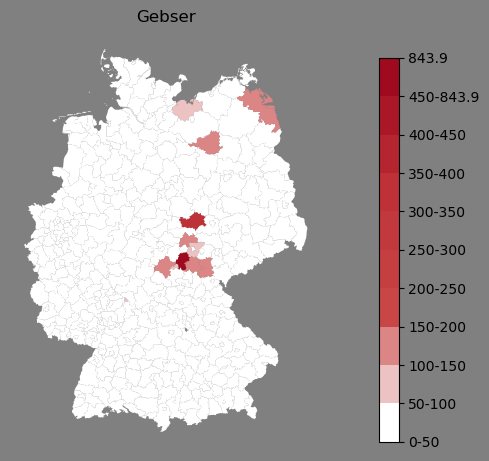 Absolute Verteilung des Namens Gebser (1890)Direkt zur Karte Absolute Verteilung des Namens "Gebser" um 1890 im damaligen Deutschen Reich Sie können die Karte innerhalb des Fensters zoomen und verschieben. |