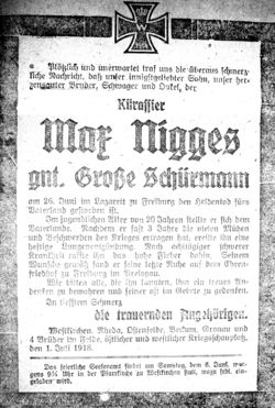 Gefallene aus Westkirchen im 1. Weltkrieg/Max Nigges