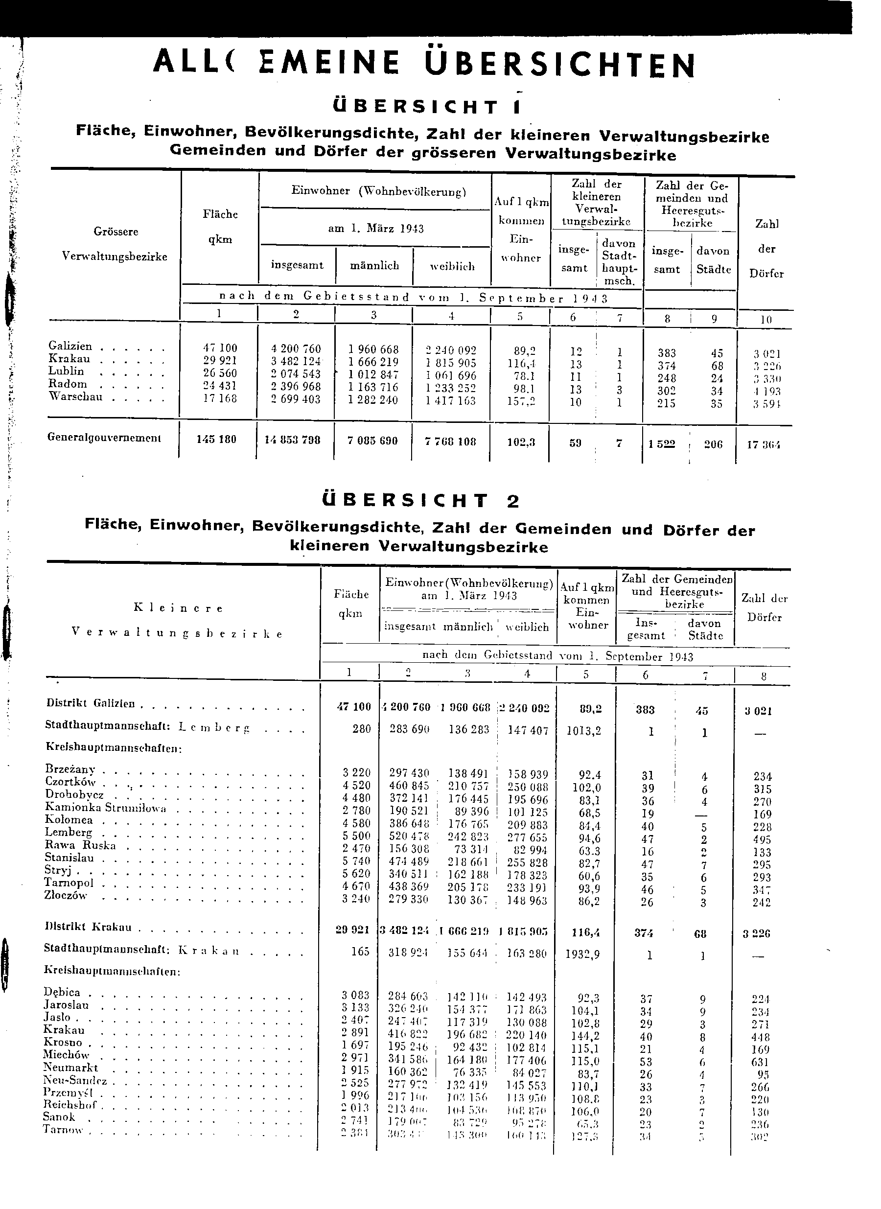 Gemeinde- und Dorfverzeichnis für das Generalgouvernement (1943)/Übersicht 1