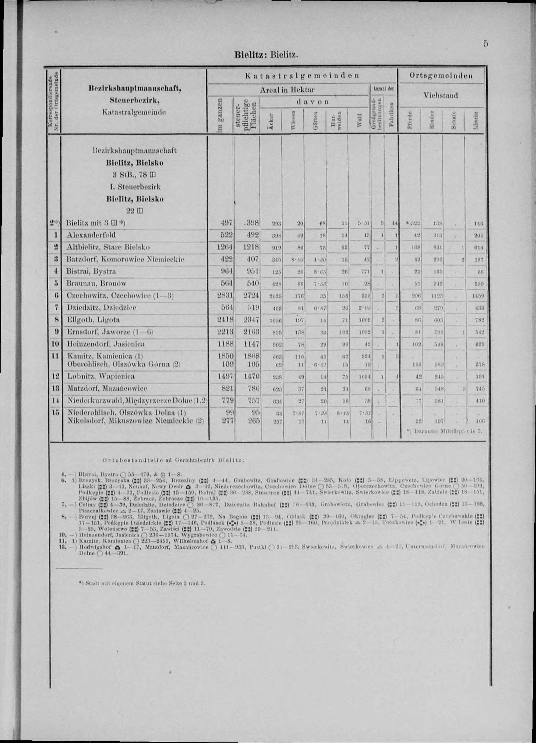 *) Darunter Militärpferde 7. Ortsbestandteile ad Gerichtsbezirk Bielitz: | ||||||||||||||