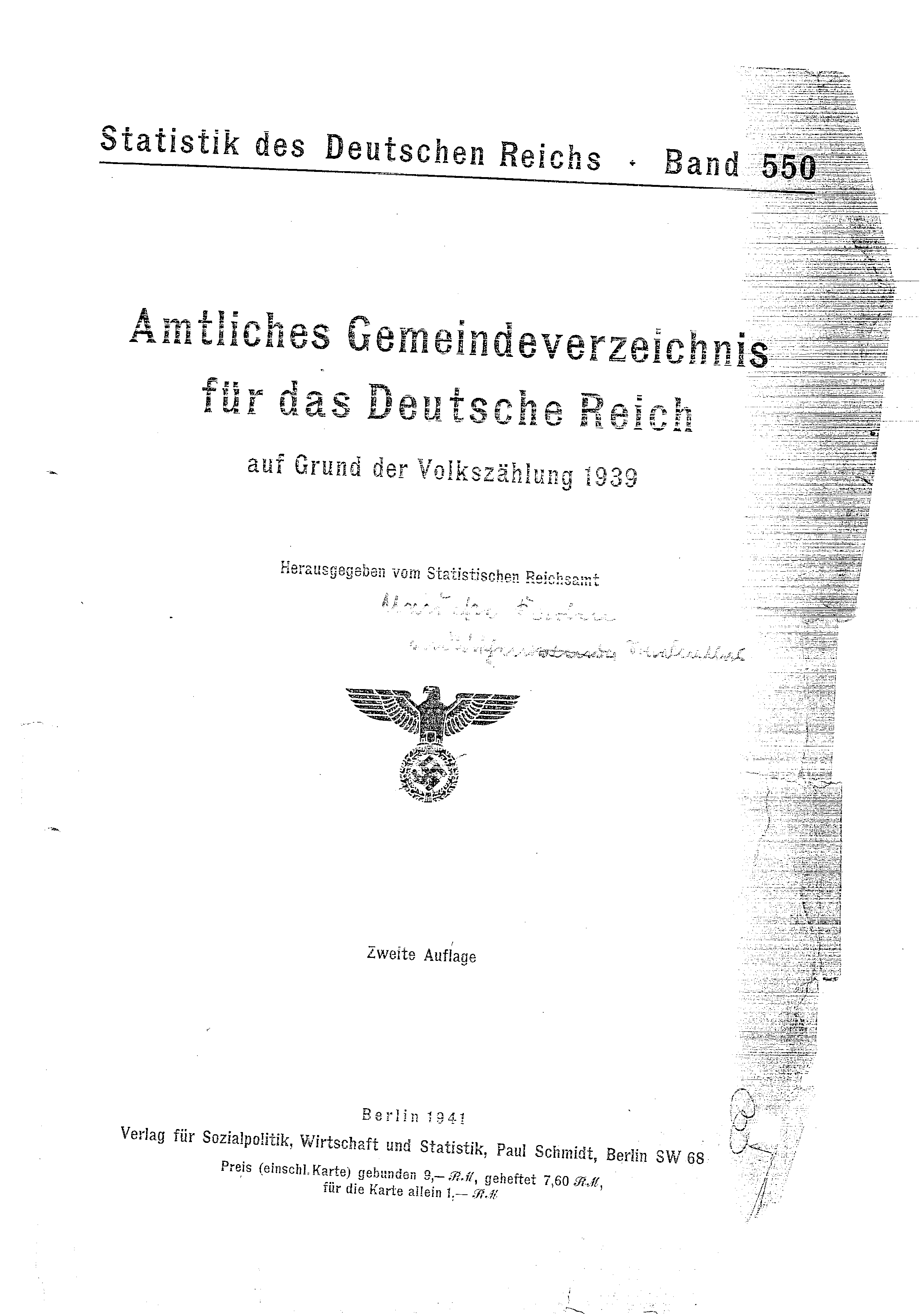 - Gemeindeverzeichnis für das Deutsche Reich (1939)