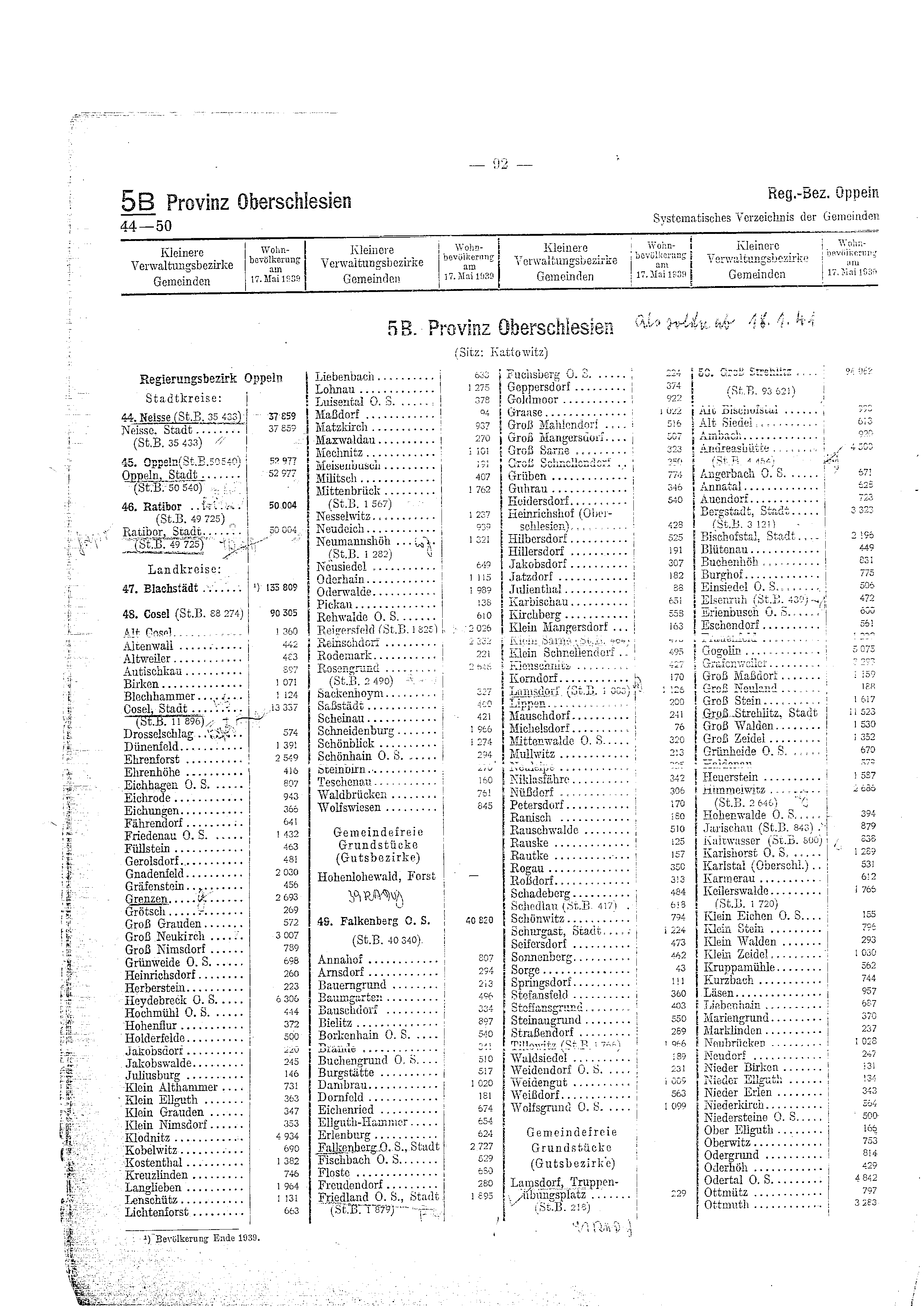 Gemeindeverzeichnis für das Deutsche Reich (1939)/092