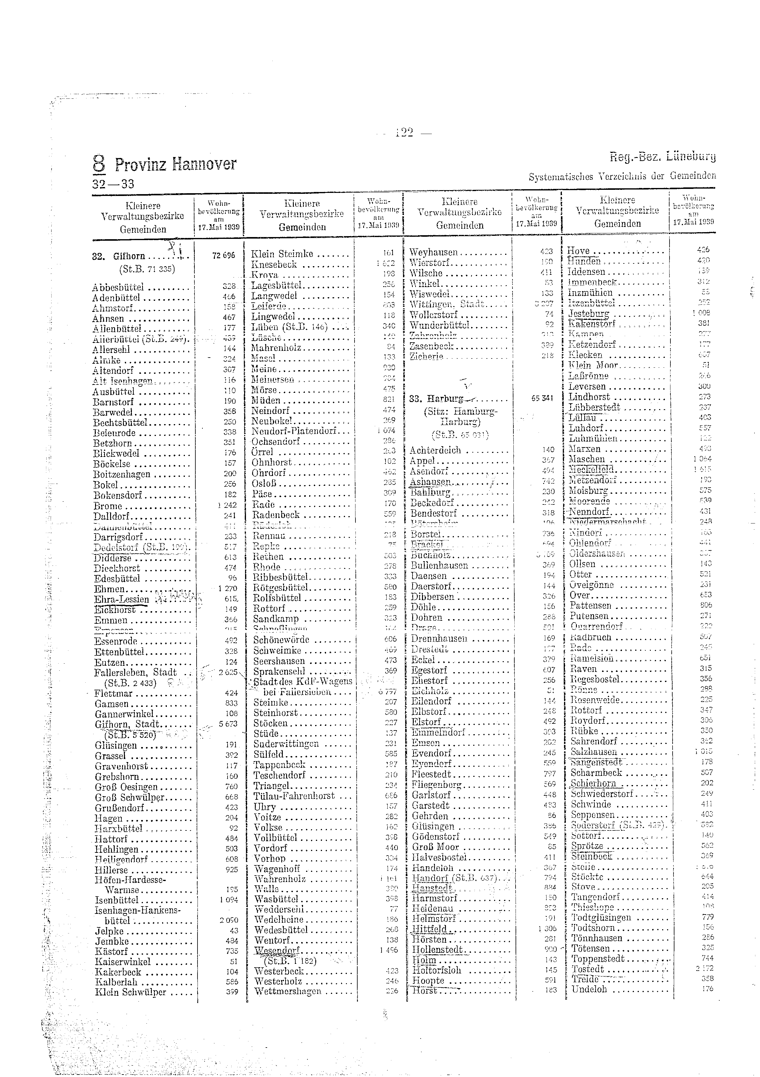 Gemeindeverzeichnis für das Deutsche Reich (1939)/122