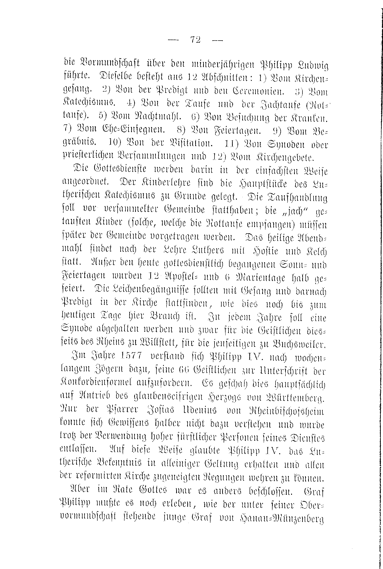 die Vormundschaft über den minderjährigen Philipp Ludwig führte. Dieselbe besteht aus 12 Abschnitten: 1) Vom Kirchengesang. 2) Von der Predigt und den Ceremonien. 3) Vom Katechismus. 4) Von der Taufe und der Jachtaufe (Nottaufe). 5) Vom Nachtmahl. 6) Von Besuchung der Kranken. 7) Vom Ehe-Einsegnen. 8) Von Feiertagen. 9) Vom Begräbnis. 10) Von der Visitation. 11) Von Synoden oder priesterlichen Versammlungen und 12) Vom Kirchengebete.