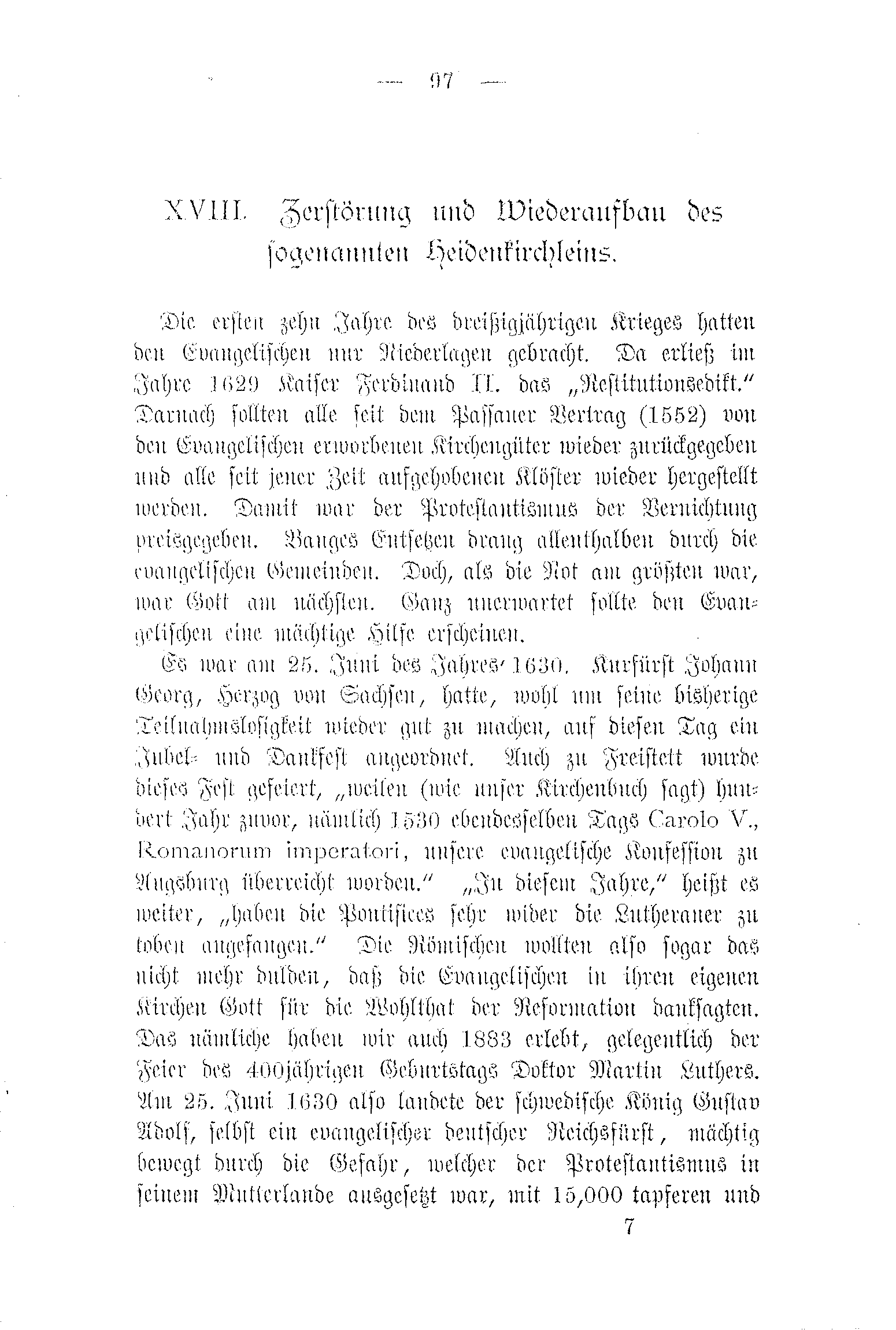 XVIII. Zerstörung und Wiederaufbau des sogenannten Heidenkirchleins.